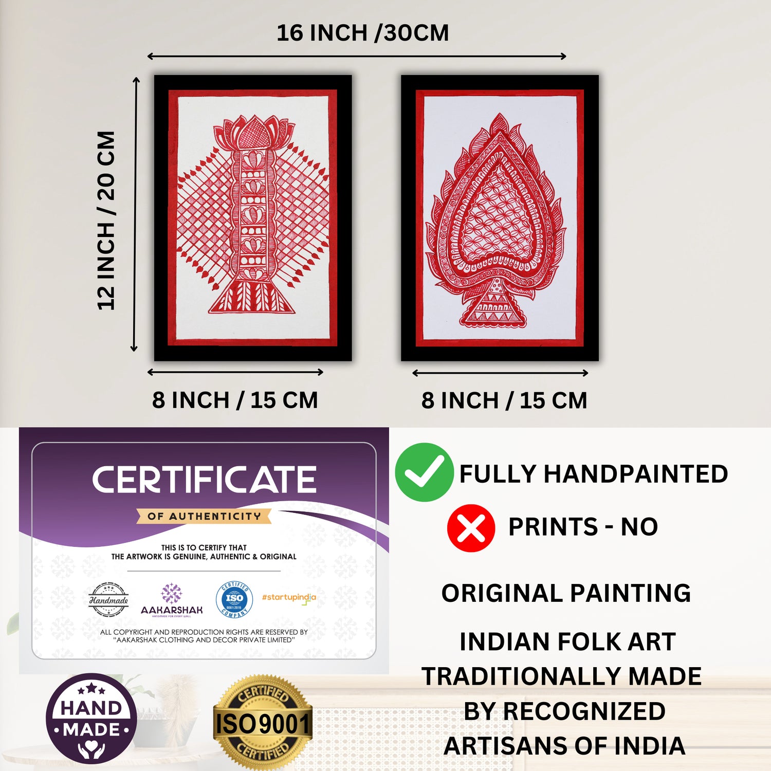 Handmade Bamboo and Paan Madhubani Painting 8x12 Set of 2