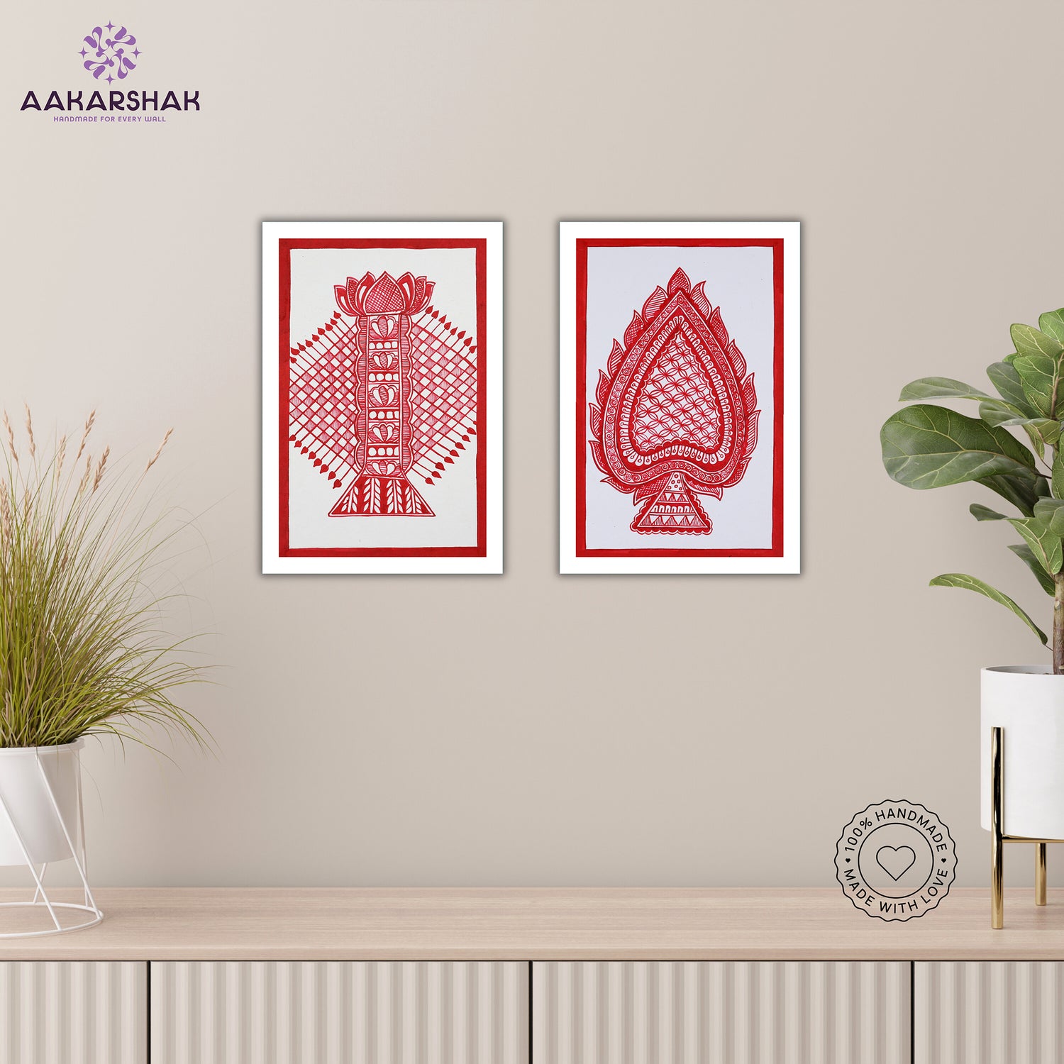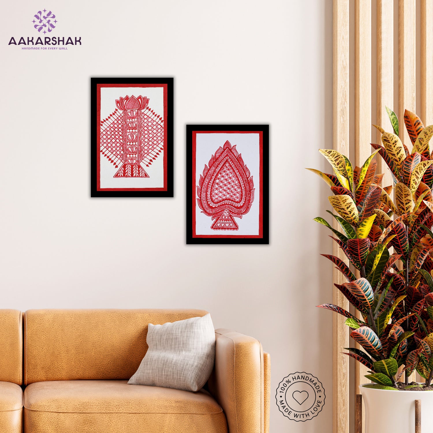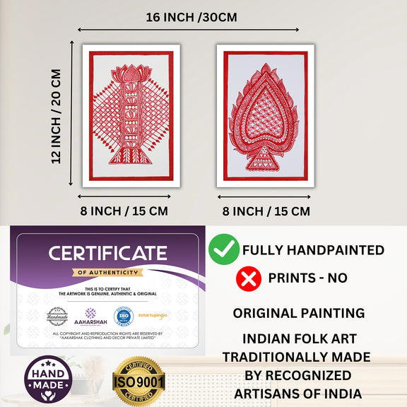 Bring tradition to your space with this vibrant, hand-painted Madhubani Combo Bamboo and Paan Painting, crafted by skilled artisans using ancient Mithila techniques.