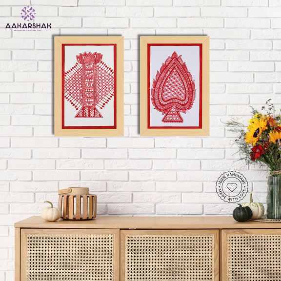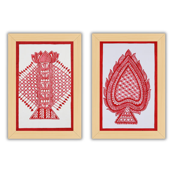 2 Framed Madhubani Painting Set(Bamboo and paan)