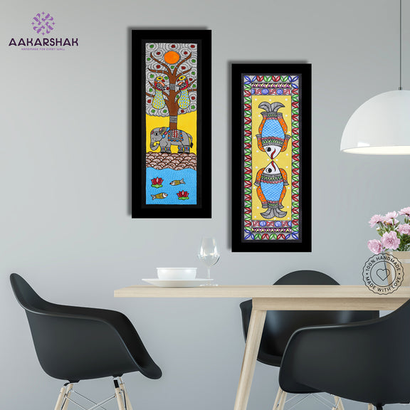 2 Framed Madhubani Painting Set (Elephant and Fish)