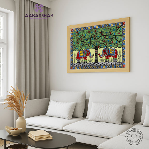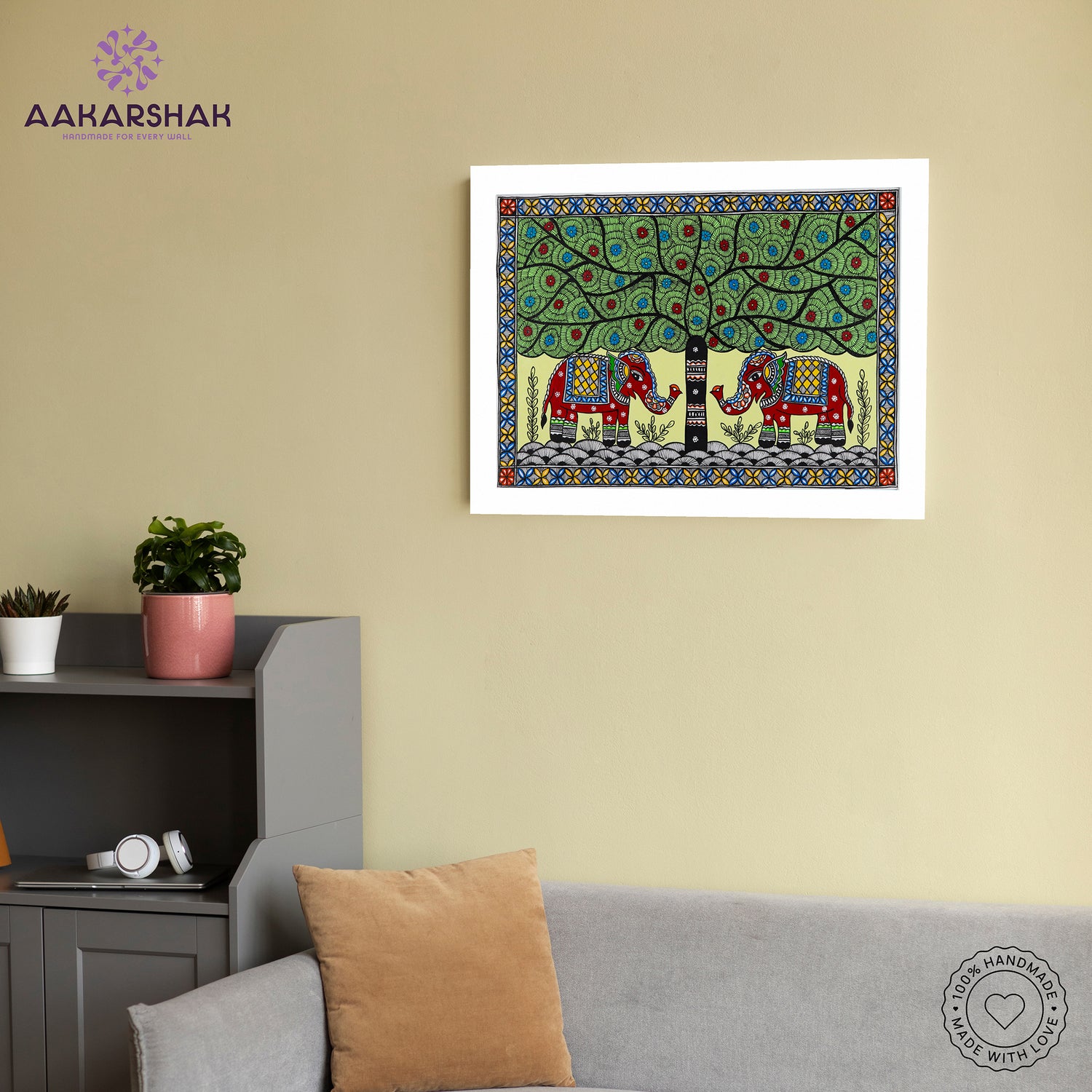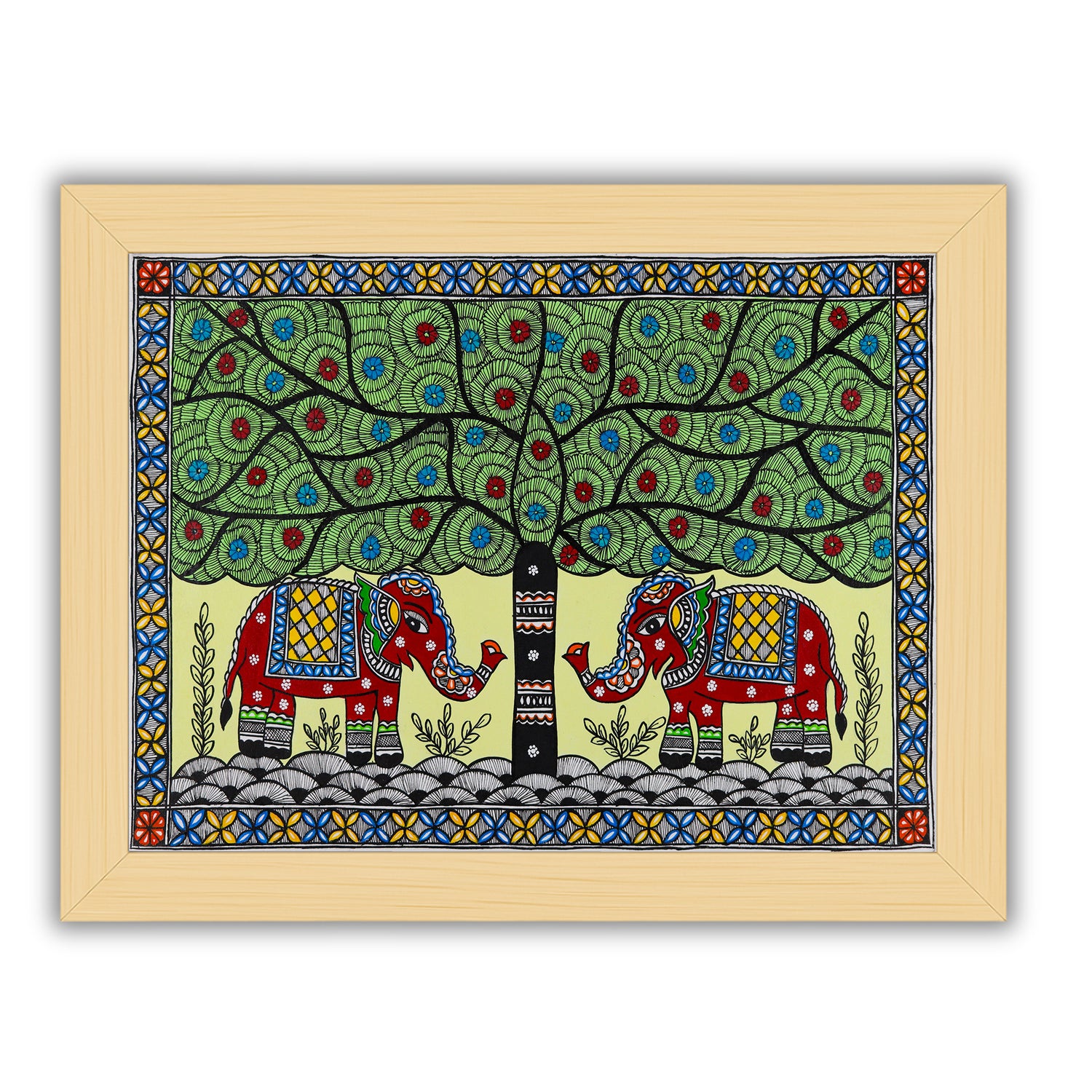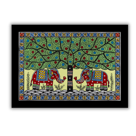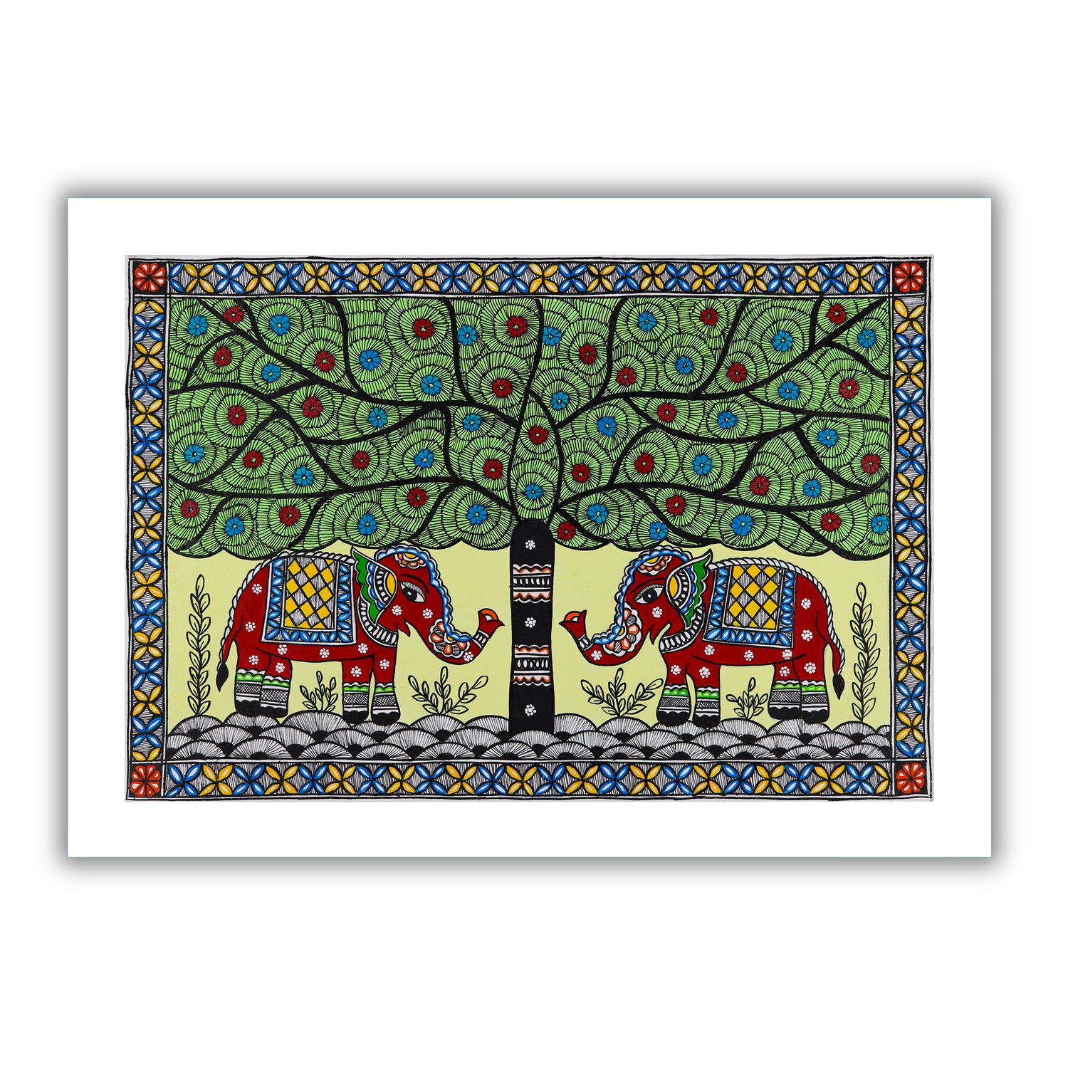 Artwork: Handmade Madhubani (Mithila) painting featuring Elephan motifs