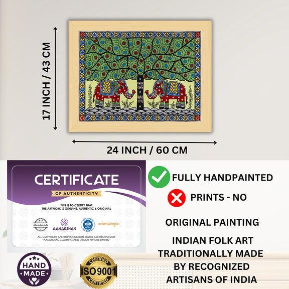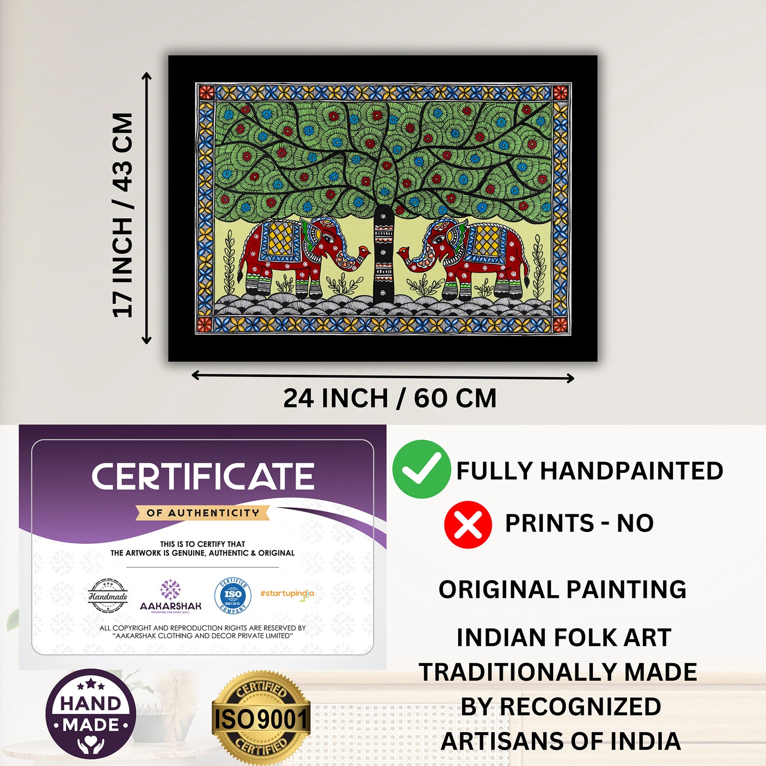 Handmade Elephant Madhubani Painting Wall Decor 17x24