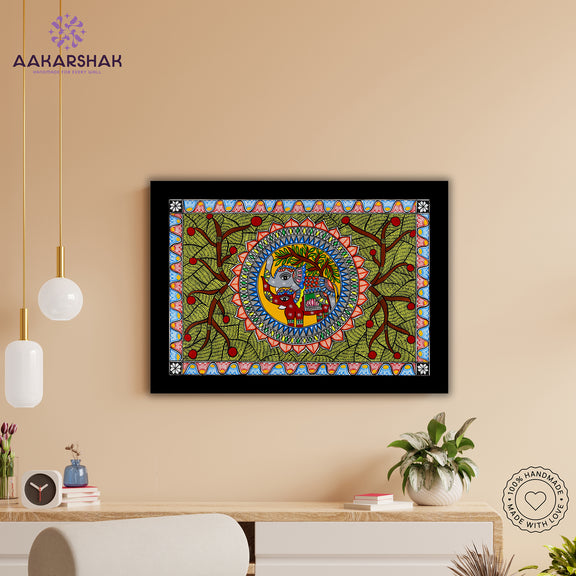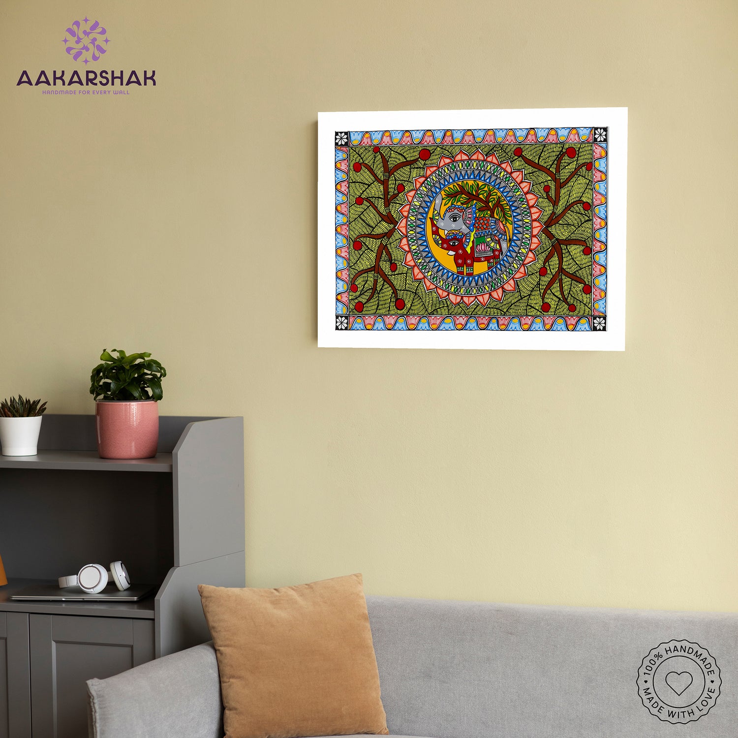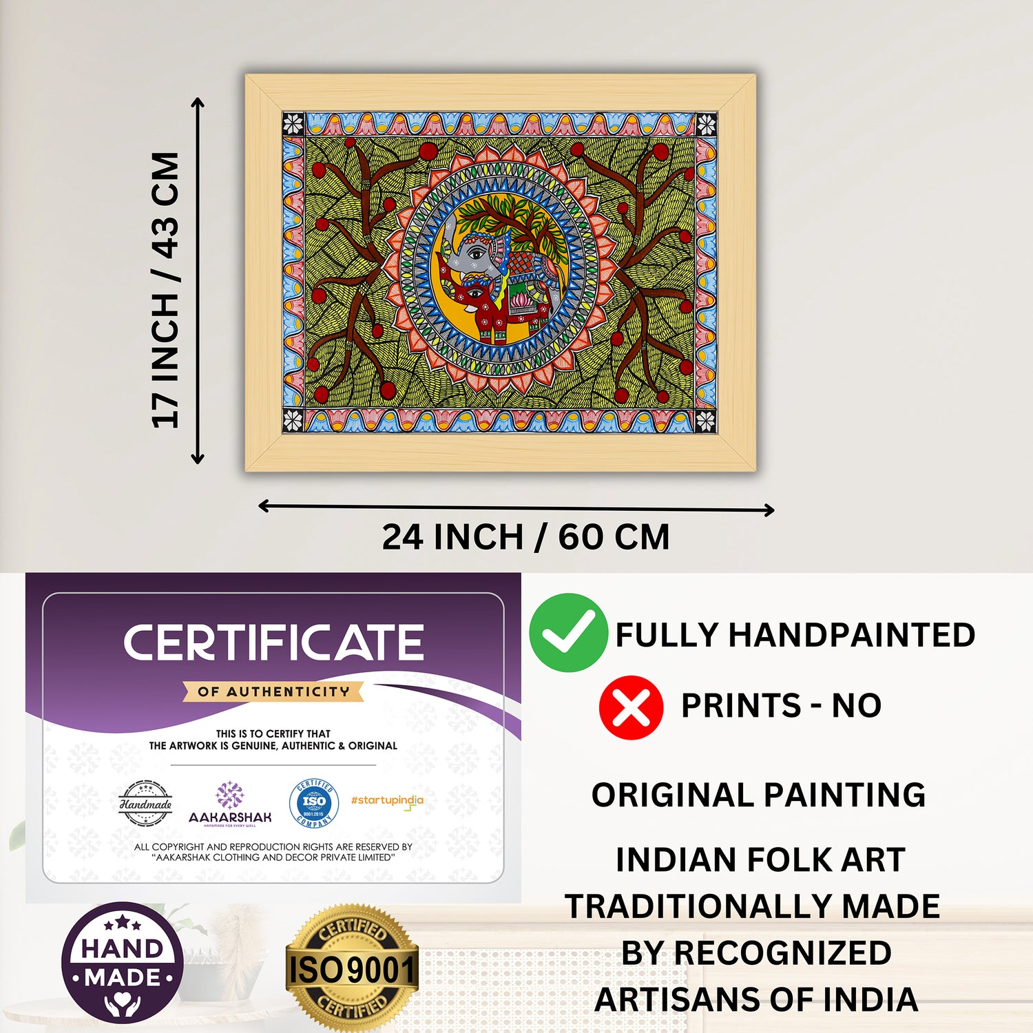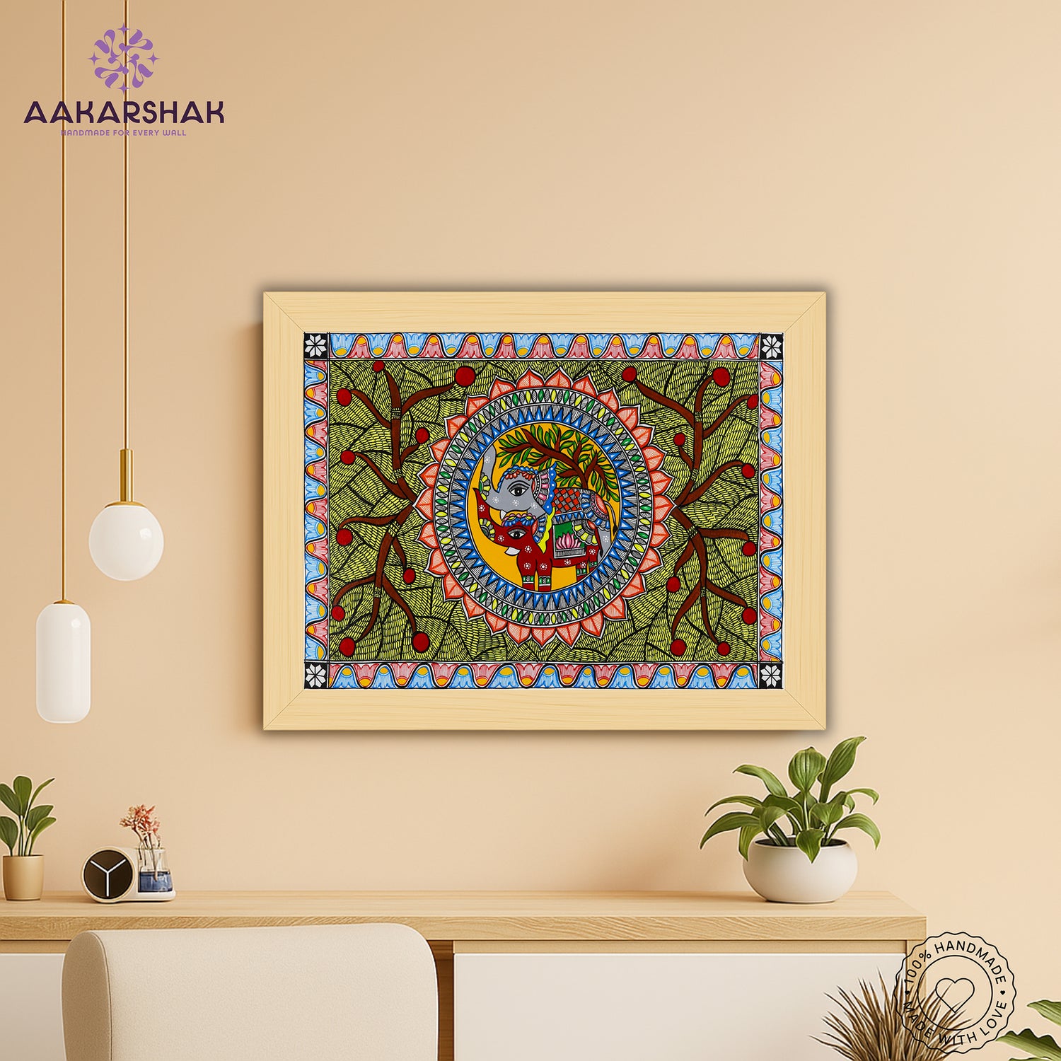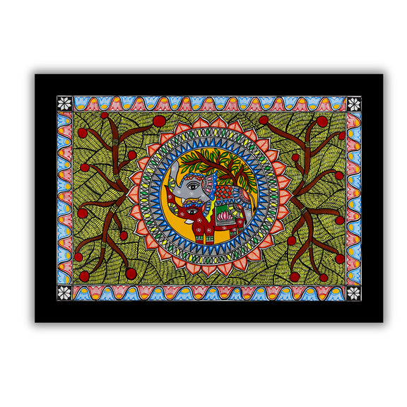 1 Framed Madhubani Painting (Elephant Tree of life motif)
