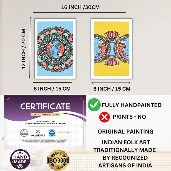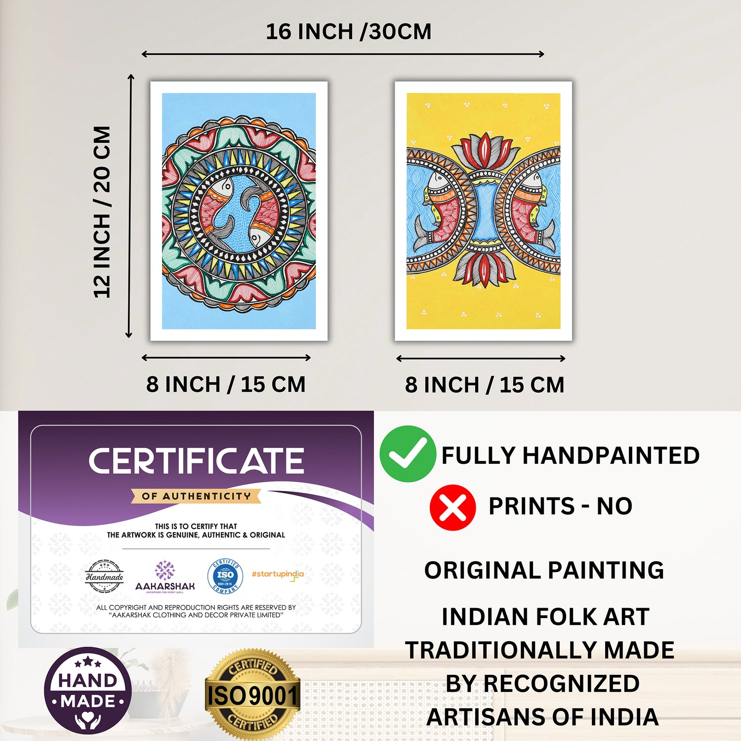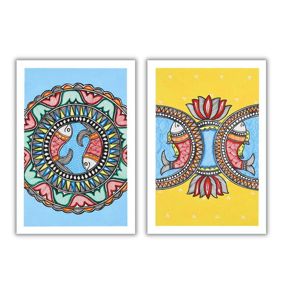 Handmade Fish Madhubani Painting 8x12 Set of 2