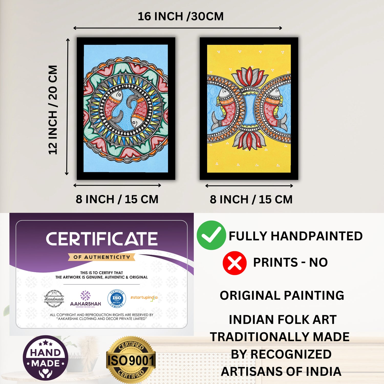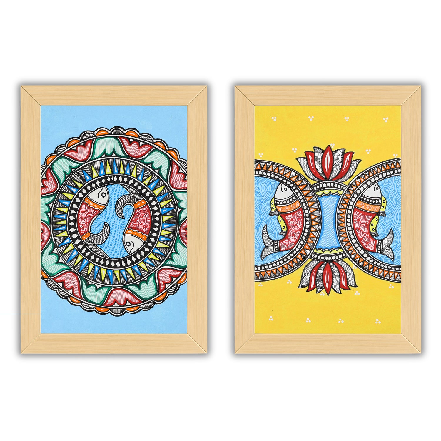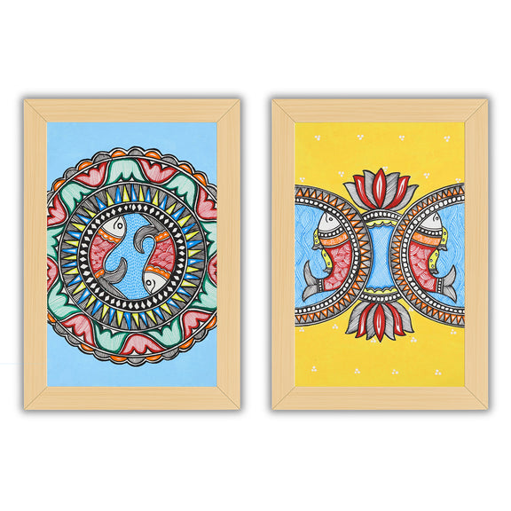 • 2 Framed Madhubani Painting Set(Fish Motif)