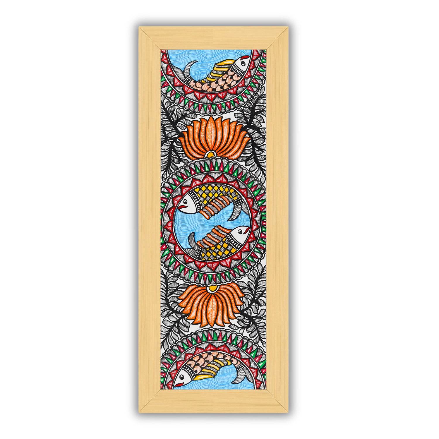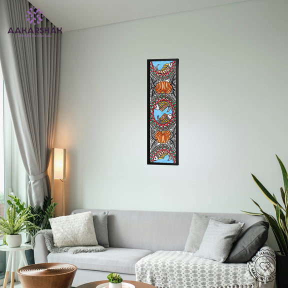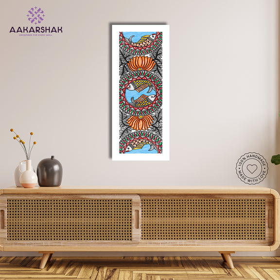 Handmade Fish Madhubani Painting | Wall Decor 8x23