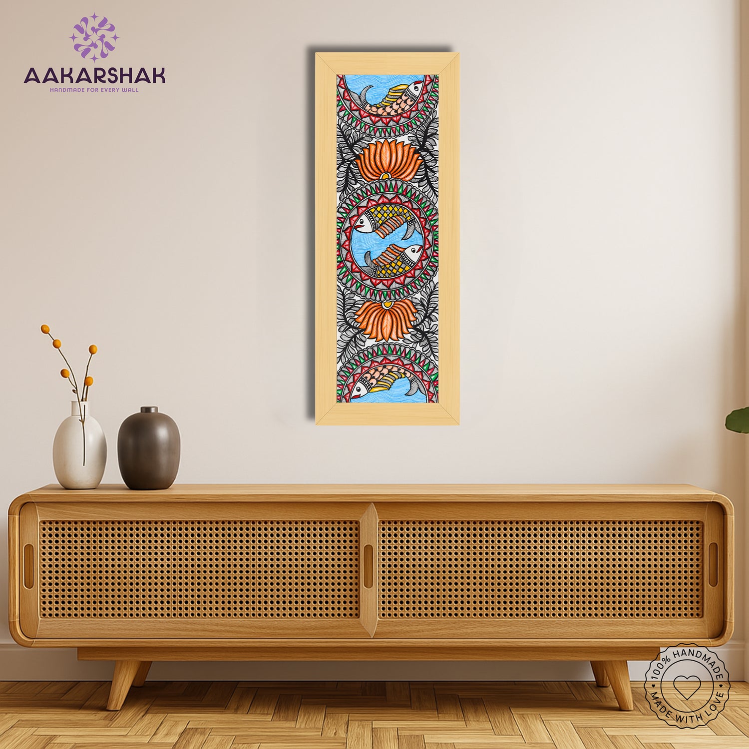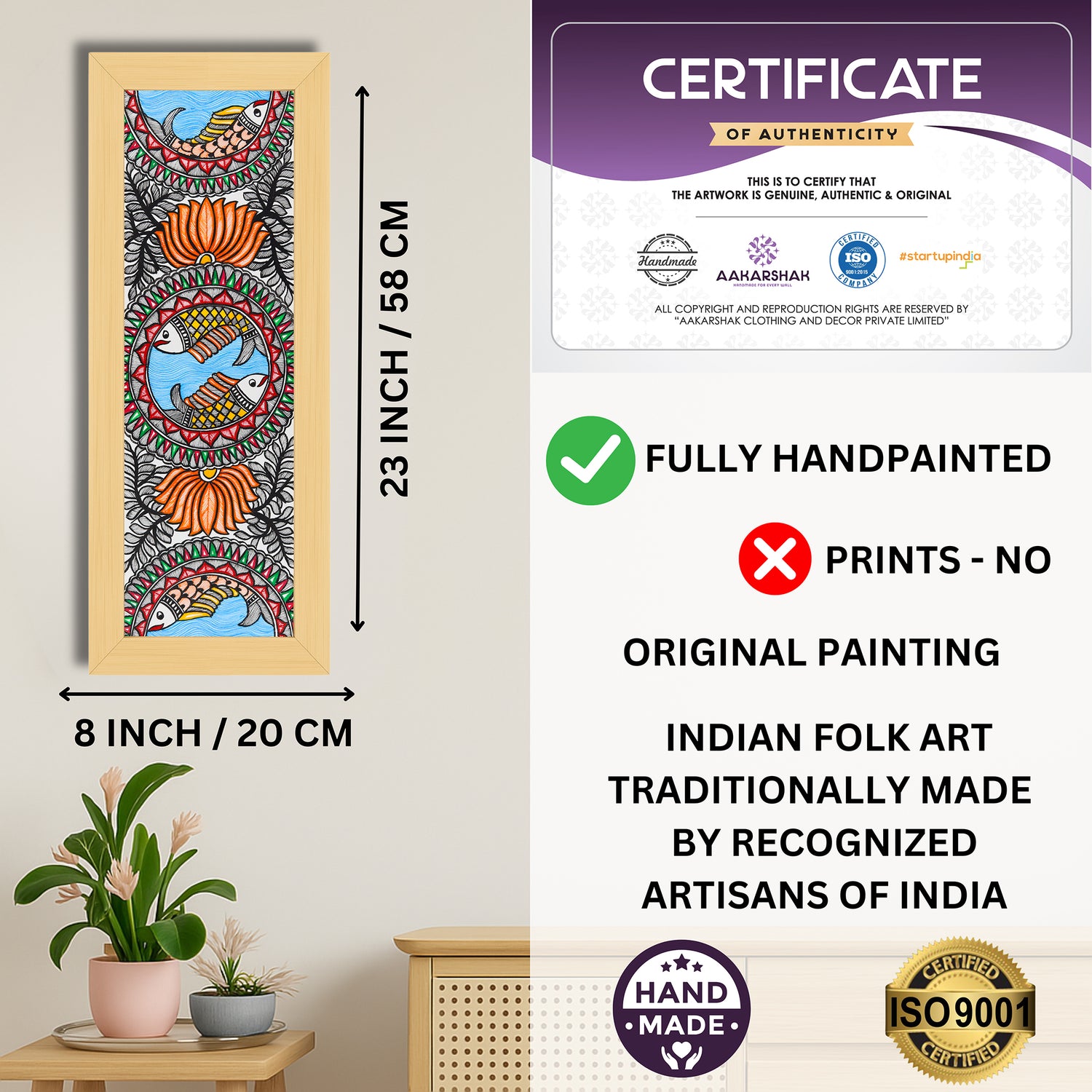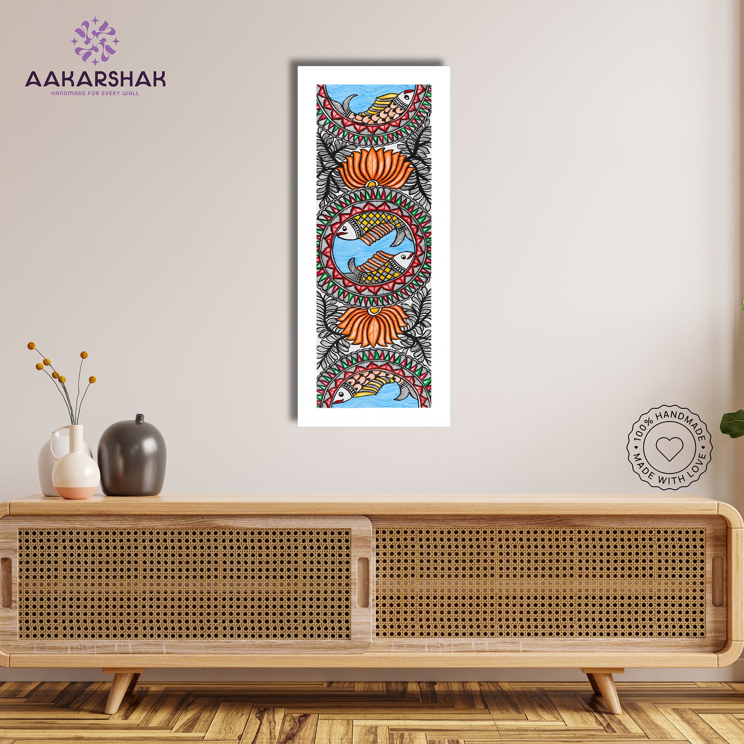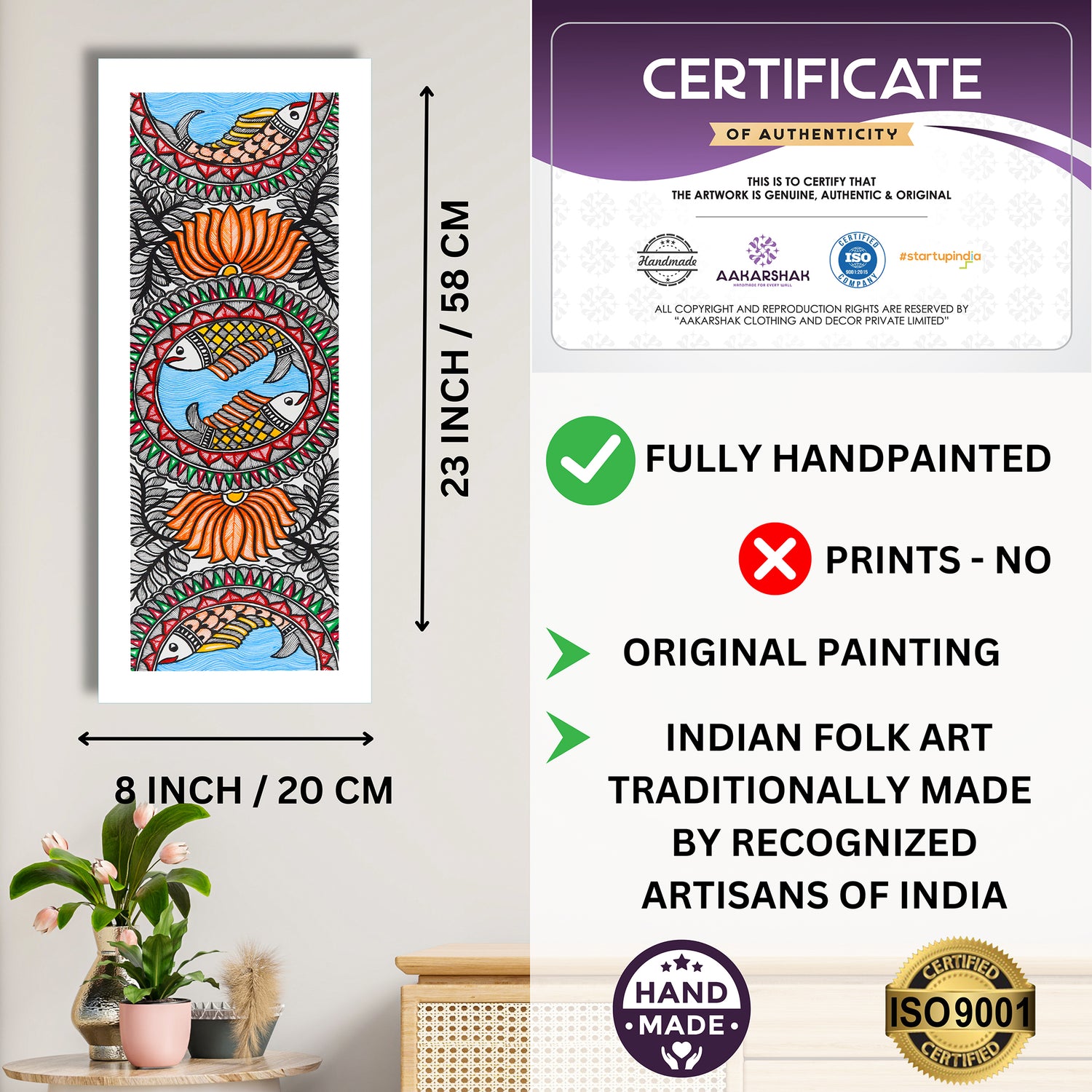 • Artwork: Handmade Madhubani (Mithila) painting featuring Fish motifs