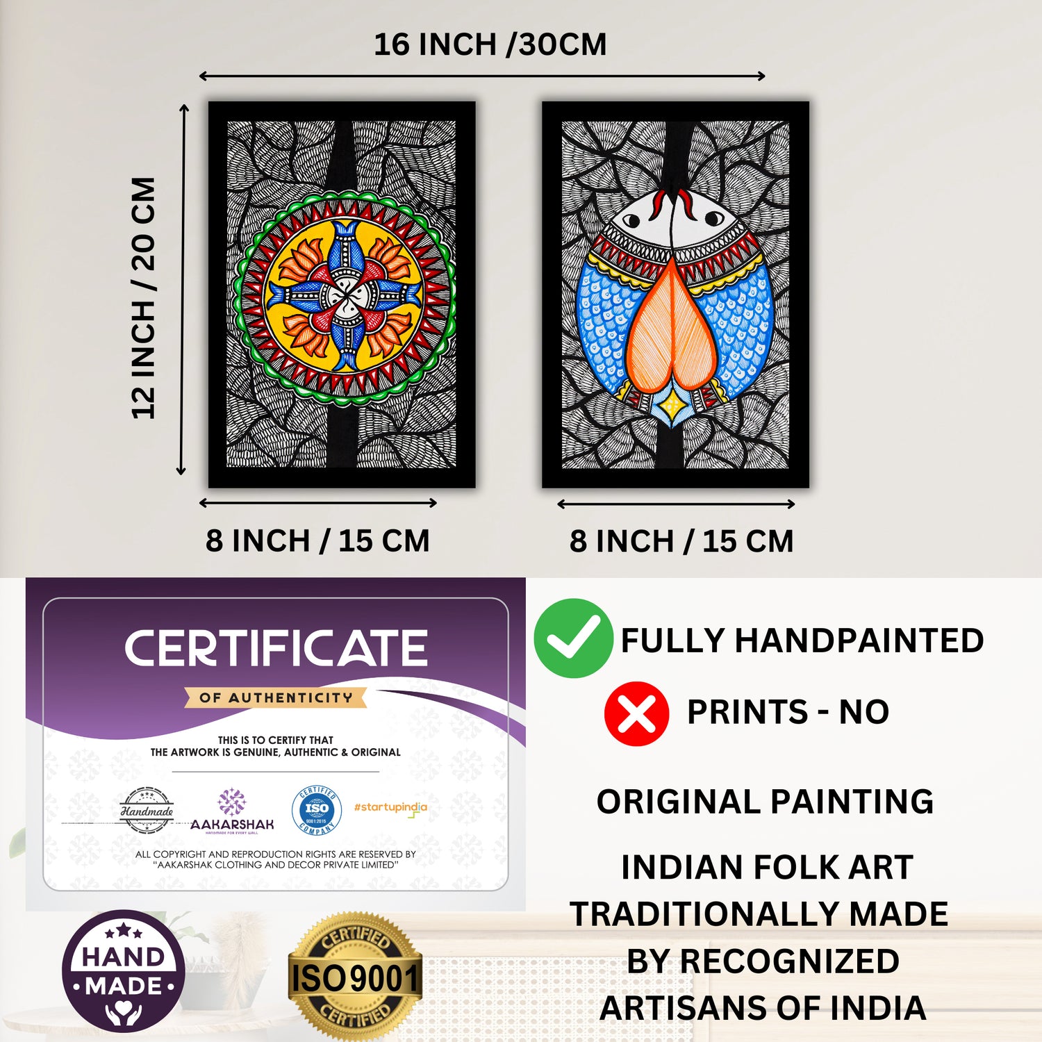 Created by skilled Indian artisans, preserving the heritage of Madhubani art
