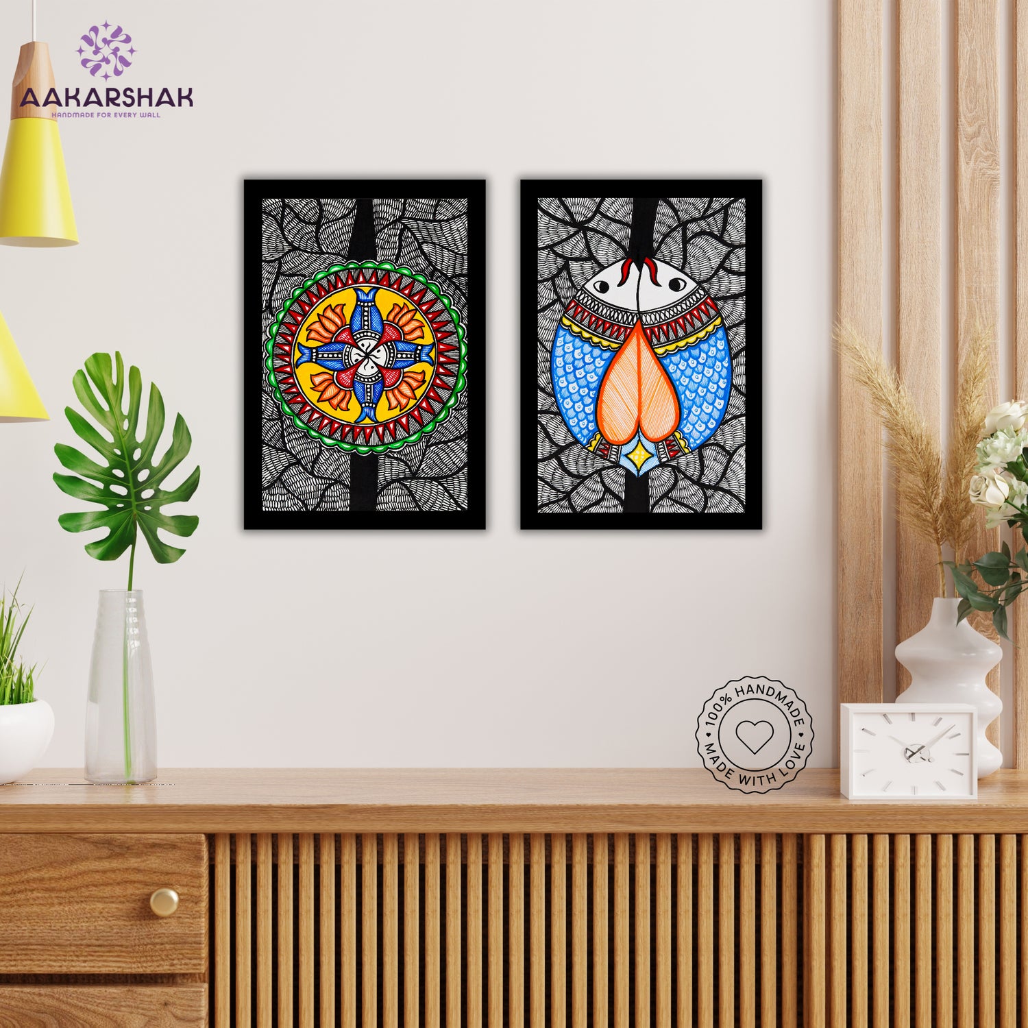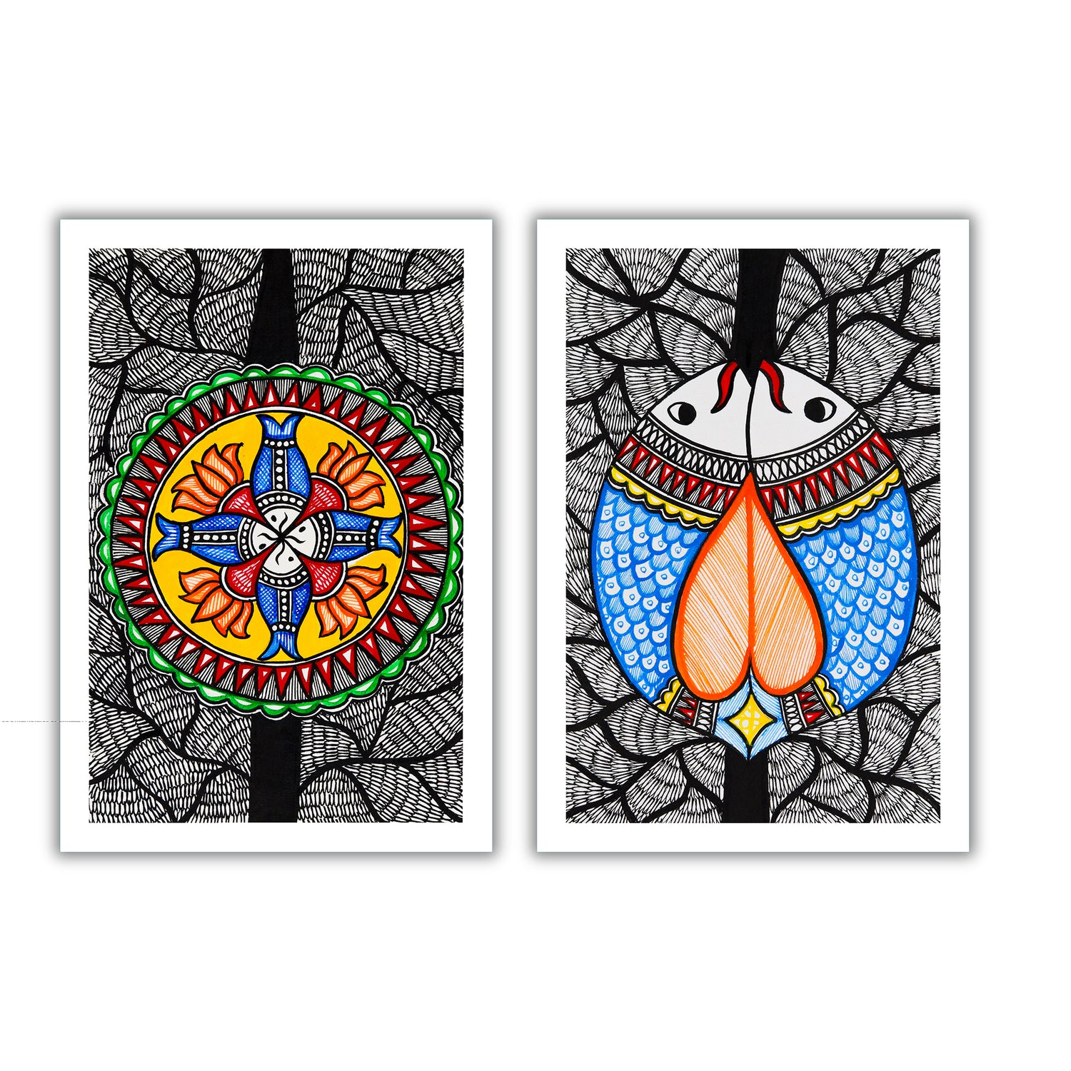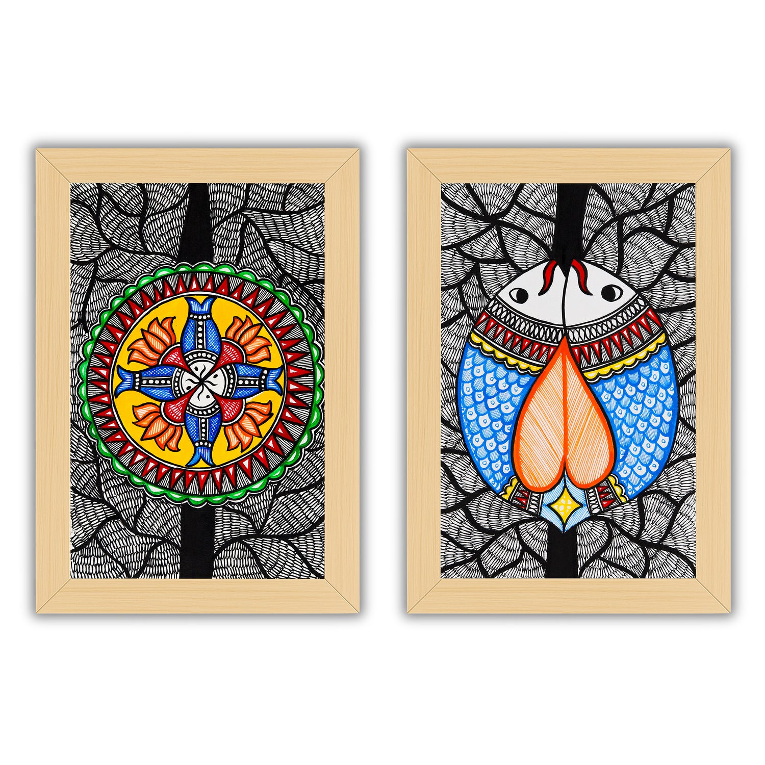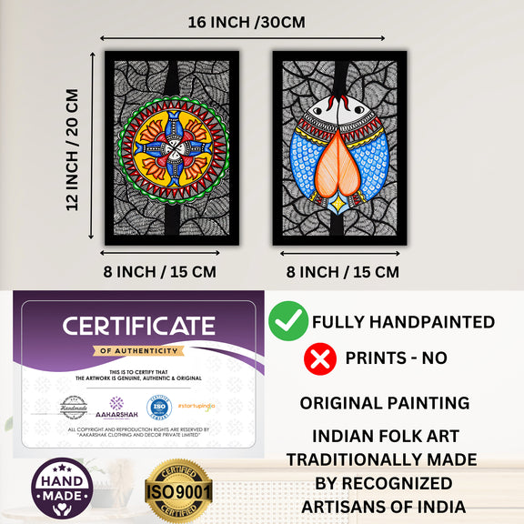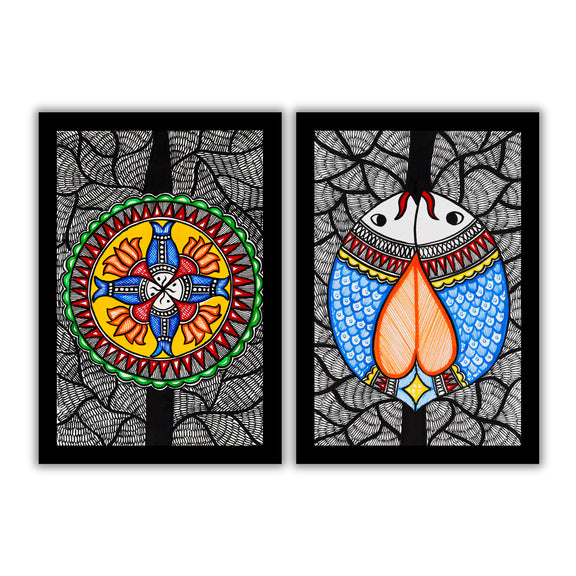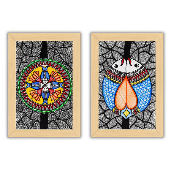 2 Framed Madhubani Painting Set(Fish Motif)
