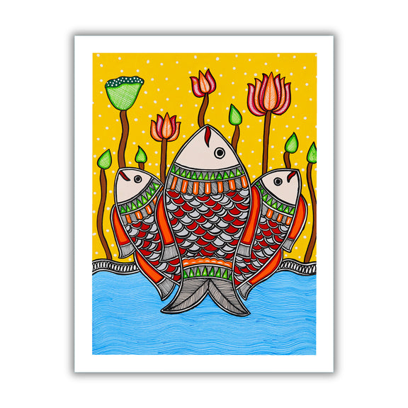• Artwork: Handmade Madhubani (Mithila) painting featuring Fish motifs