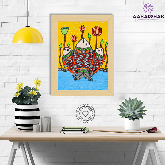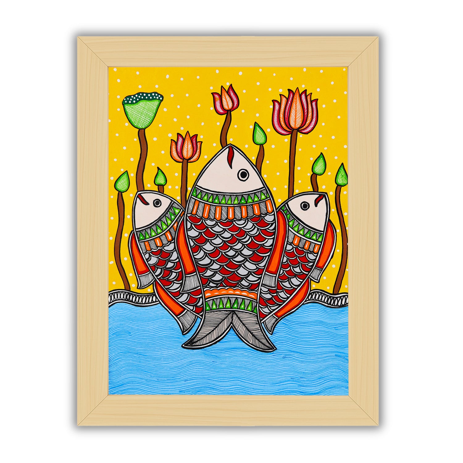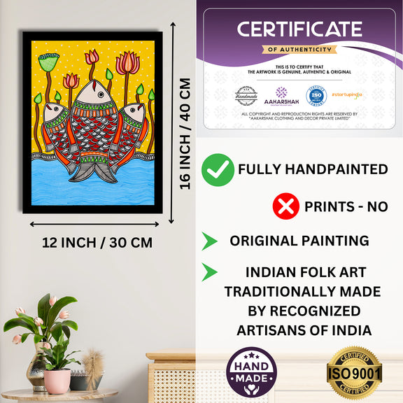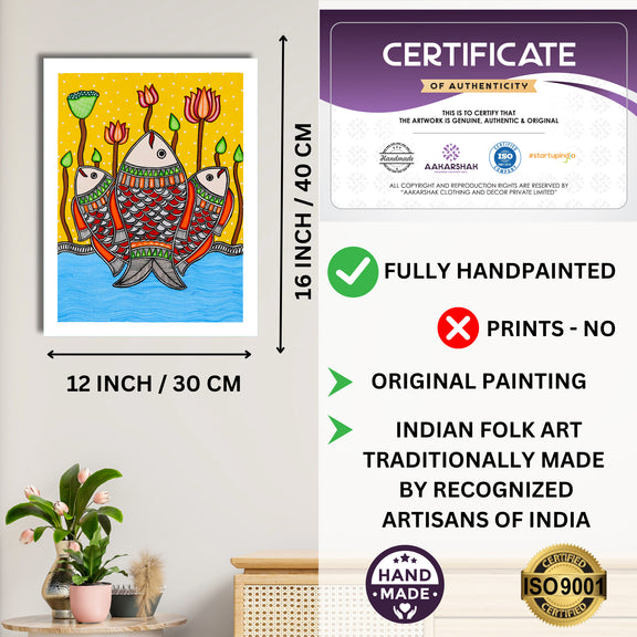 Handmade Madhubani Fish Painting 12x16 Inch Wall Decor