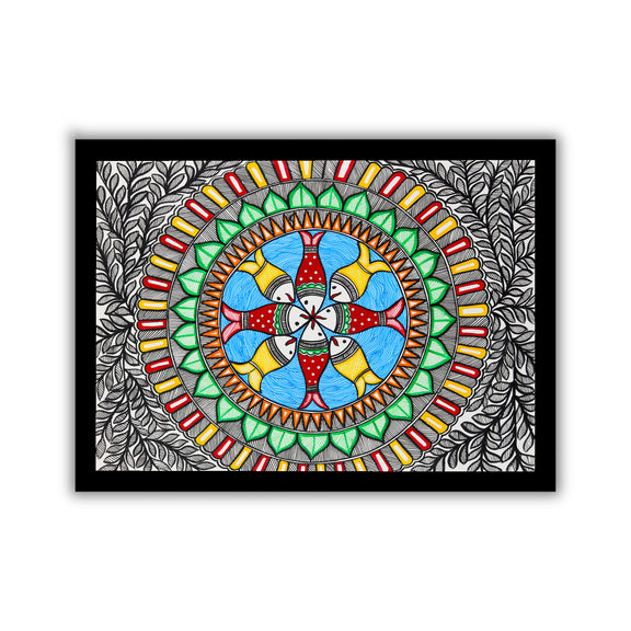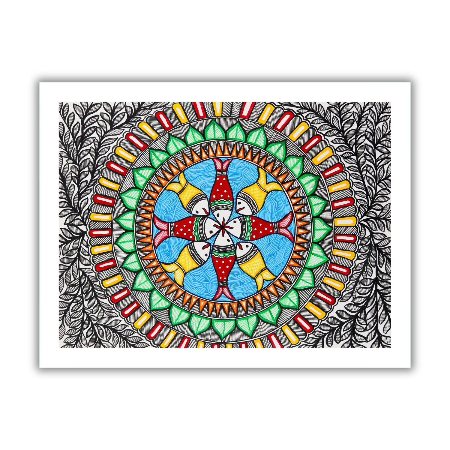 Artwork: Handmade Madhubani (Mithila) painting featuring Fish motifs