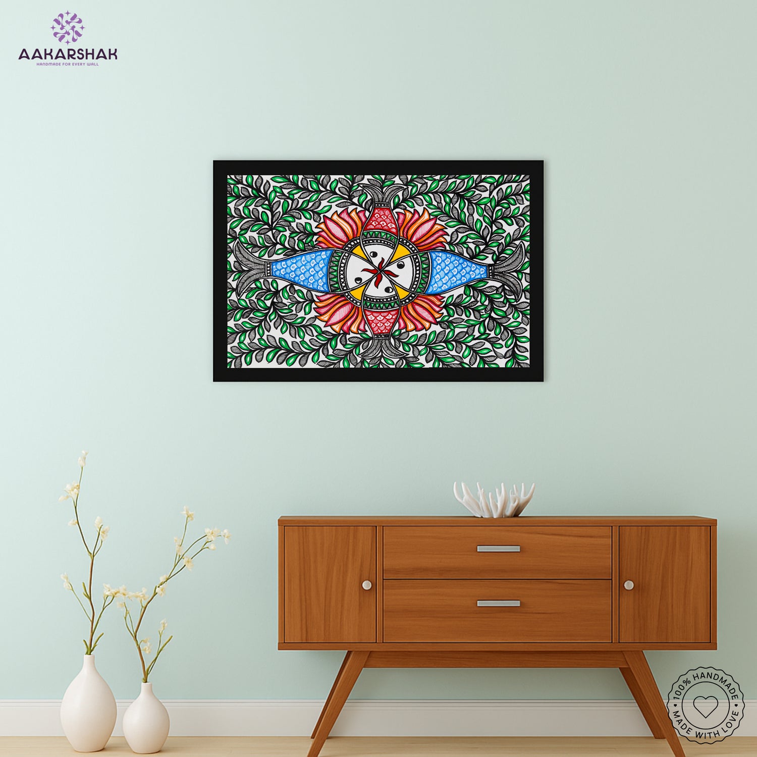 Bring tradition to your space with this vibrant, hand-painted Madhubani Fish Painting, crafted by skilled artisans using ancient Mithila techniques.