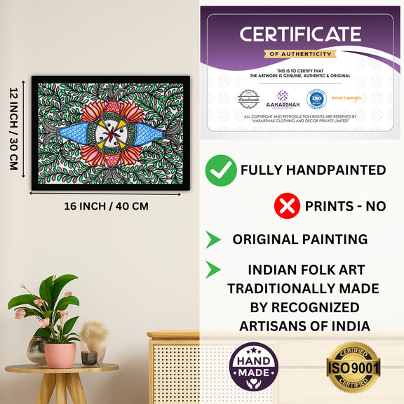 Handmade Madhubani Fish Painting 12x16 Inch Wall Decor