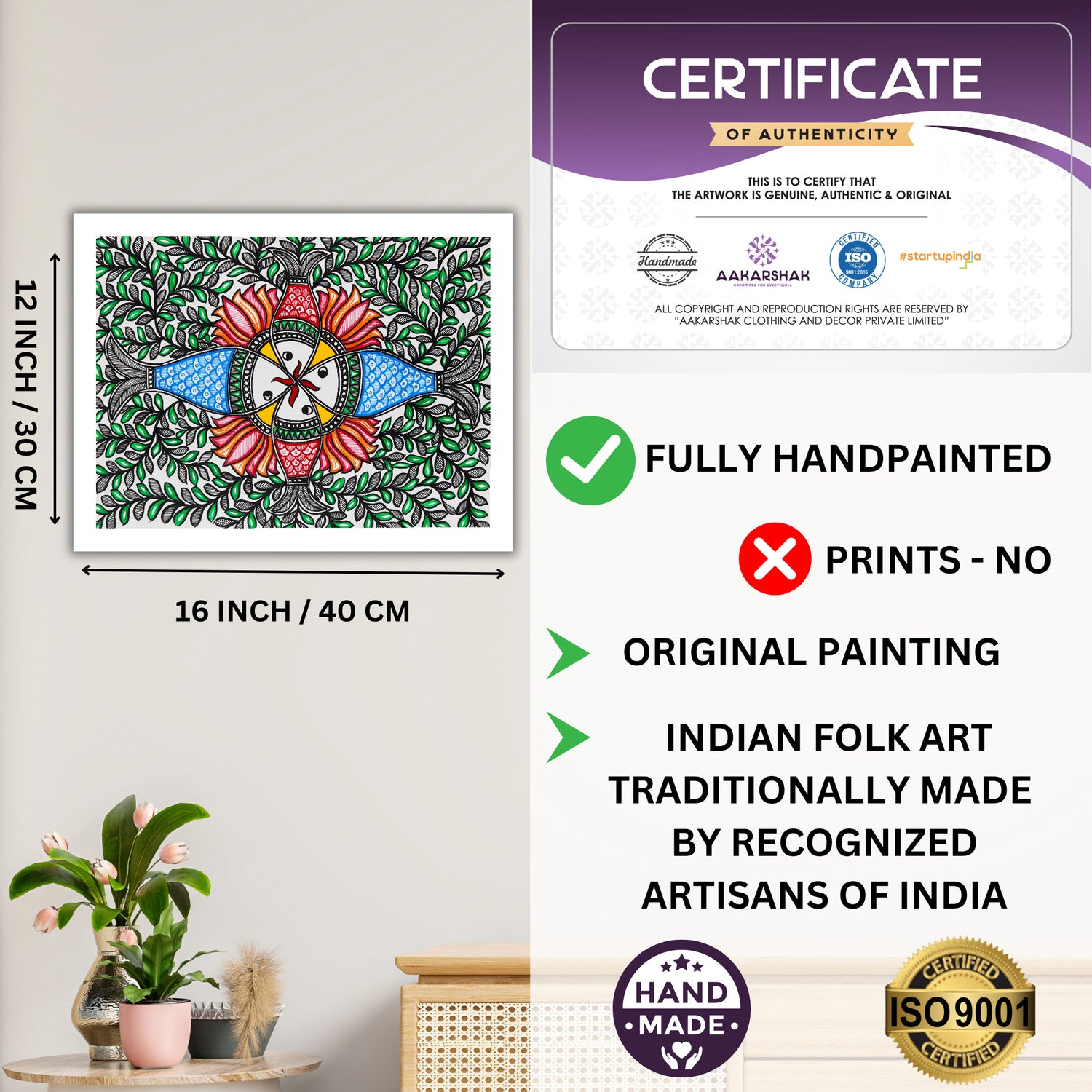 Created by skilled Indian artisans, preserving the heritage of Madhubani art