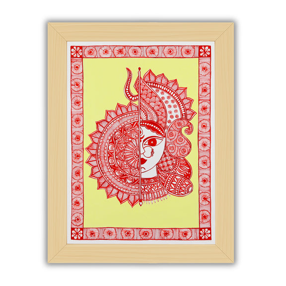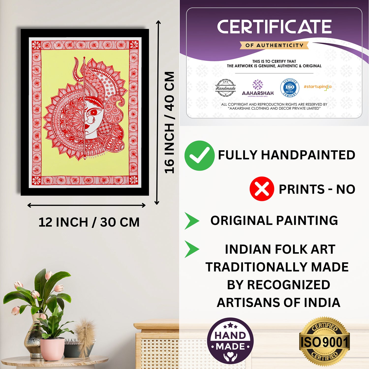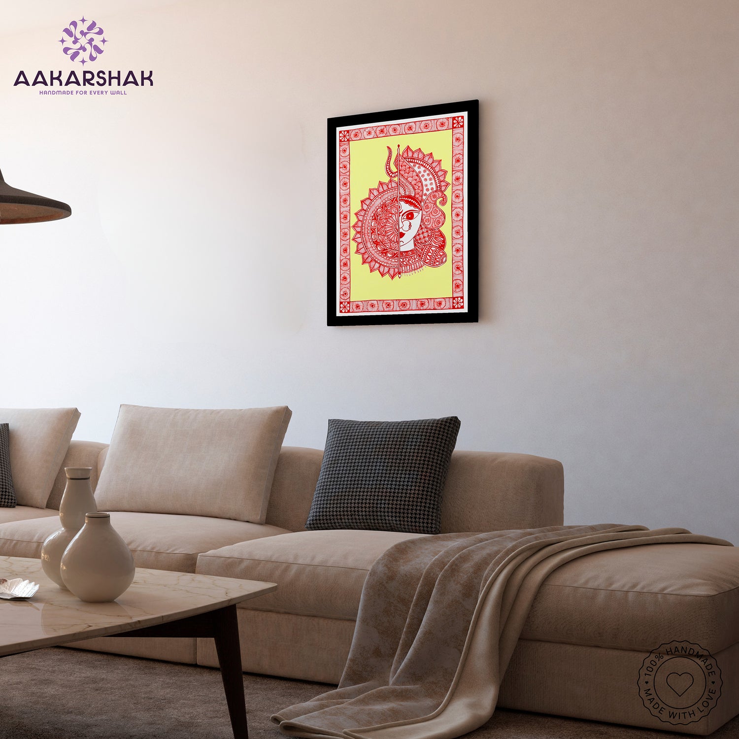 Handmade Madhubani Painting of Maa Durga 12x16 Inch Wall Decor