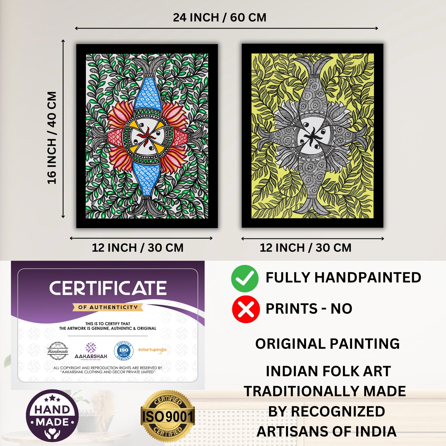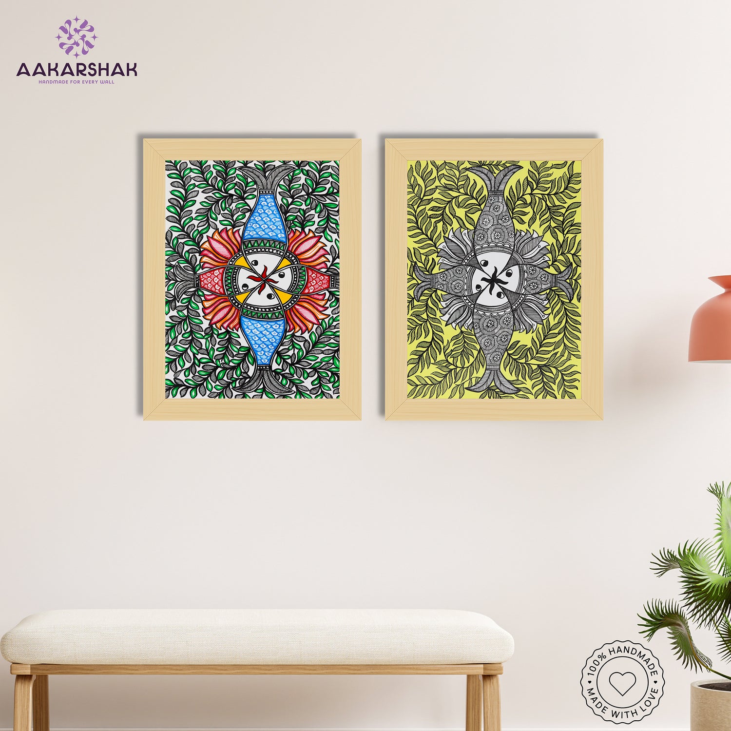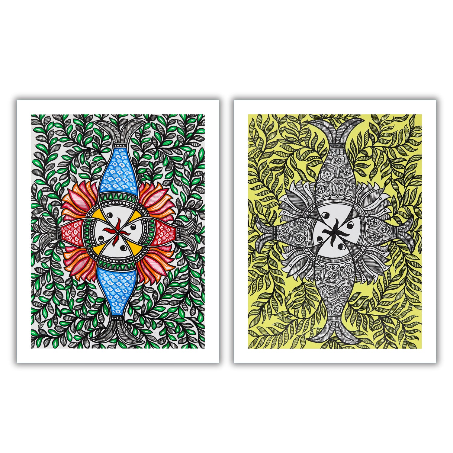 Handmade Madhubani Painting Set of 2 – Fish 12x16