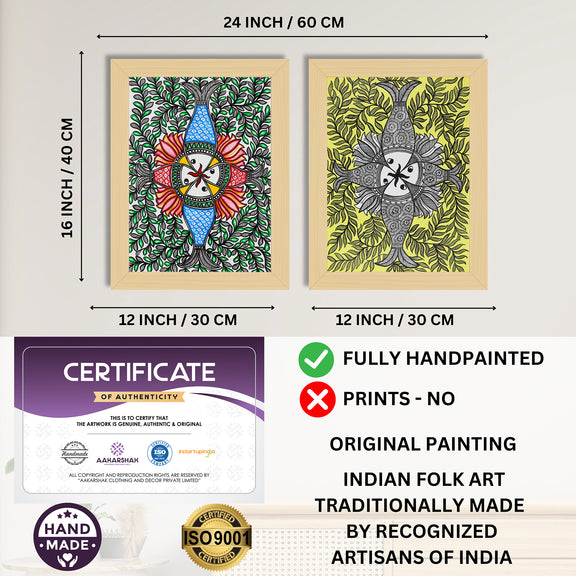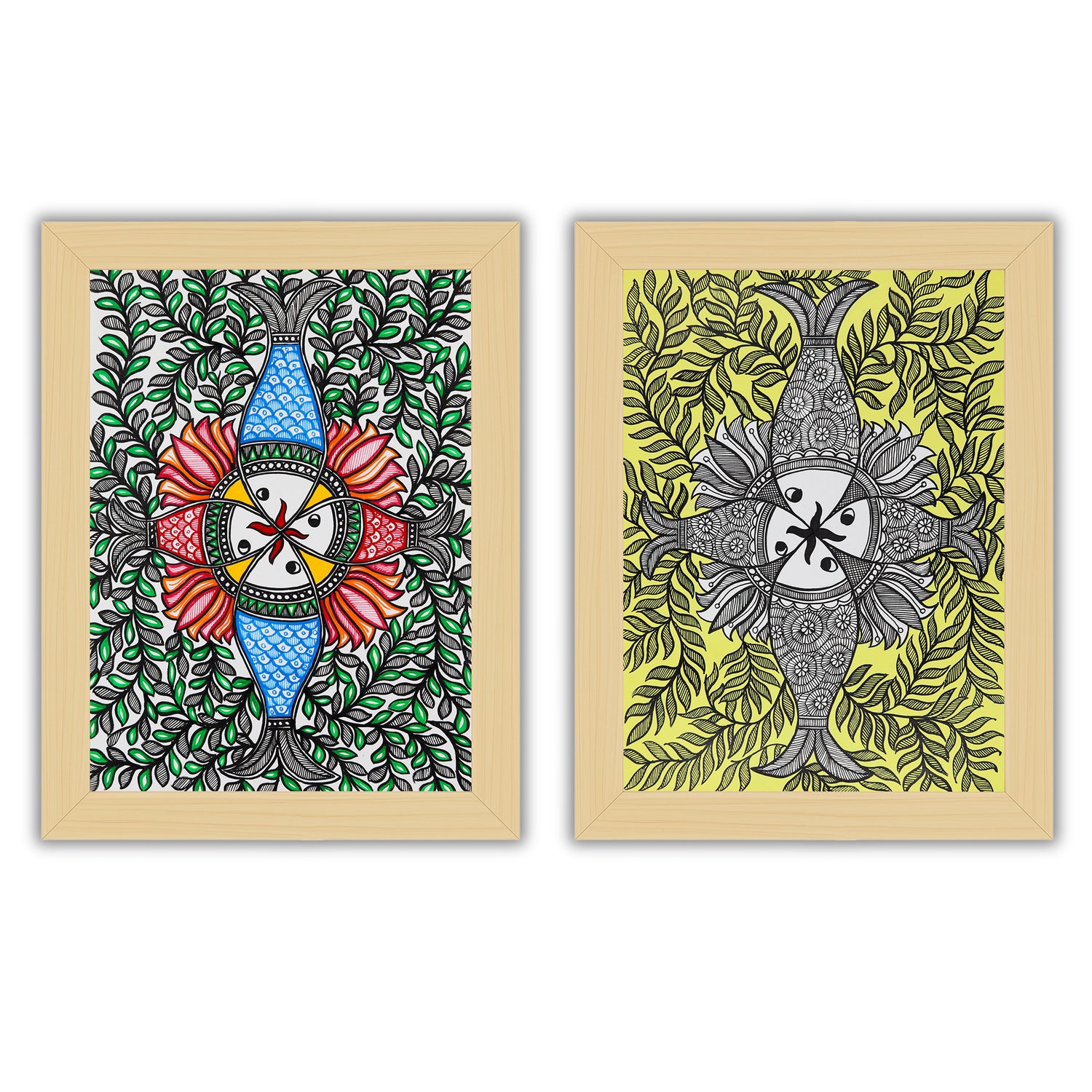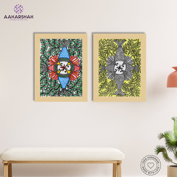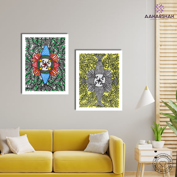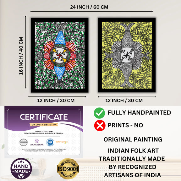 • Artwork: Handmade Madhubani (Mithila) painting featuring Fish  combo motifs