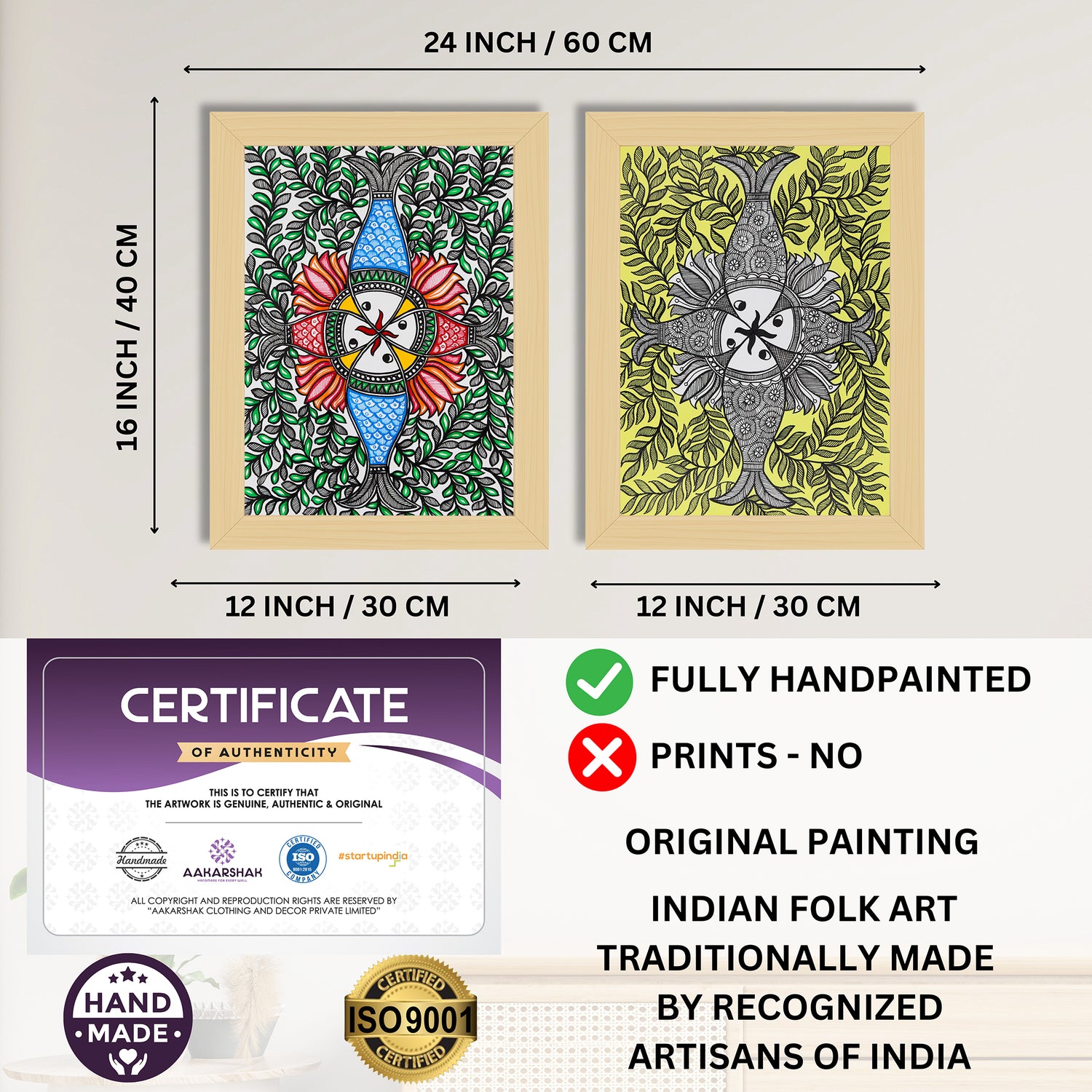 Bring tradition to your space with this vibrant, hand-painted Madhubani Fish Combo Painting, crafted by skilled artisans using ancient Mithila techniques.
