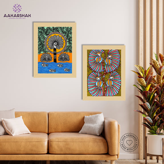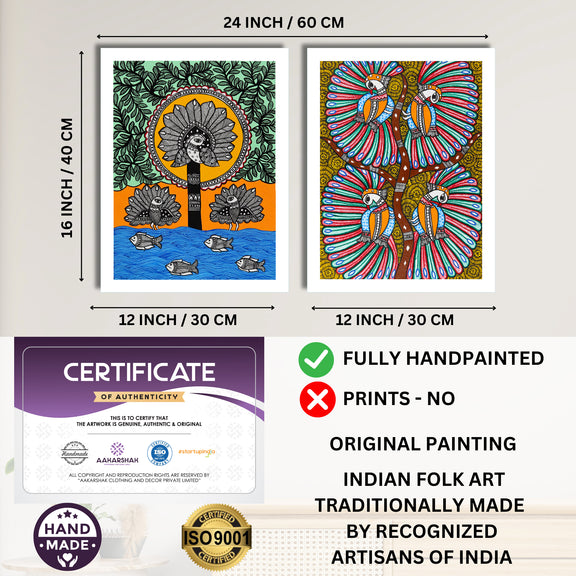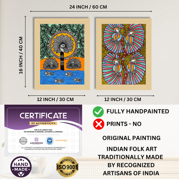 Bring tradition to your space with this vibrant, hand-painted Madhubani Peacock Combo Painting, crafted by skilled artisans using ancient Mithila techniques.