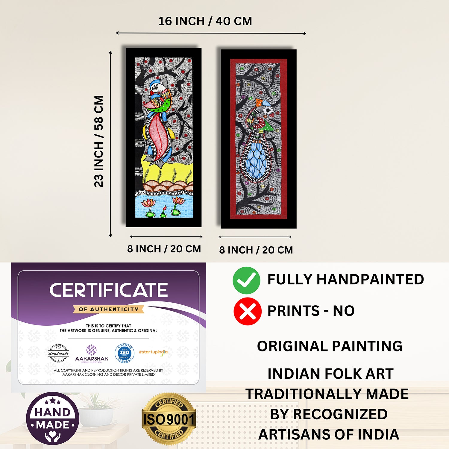 • Artwork: Handmade Madhubani (Mithila) painting featuring Peacock and Peacock motifs