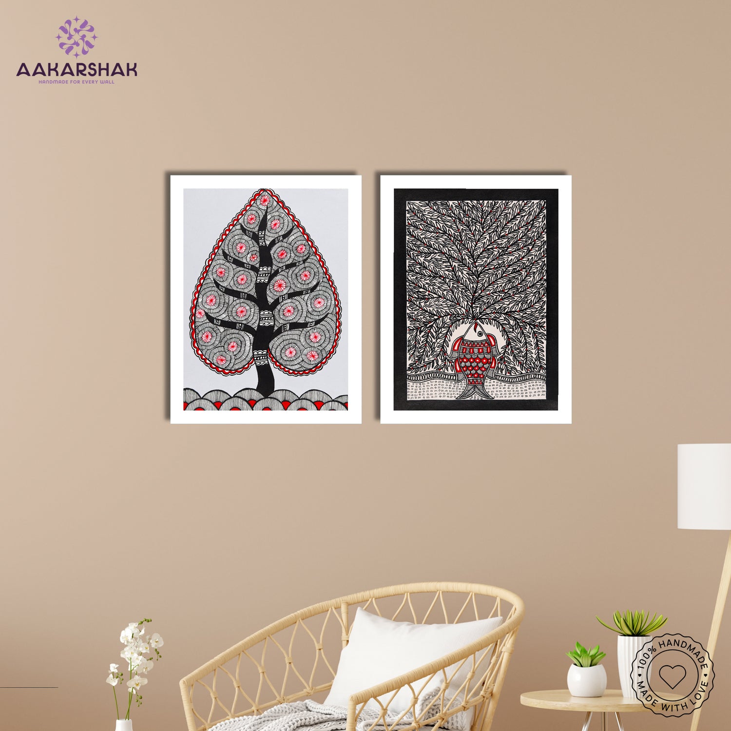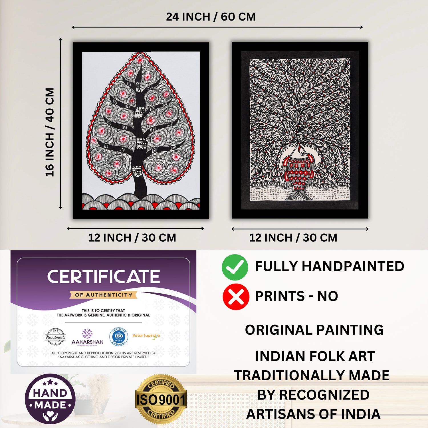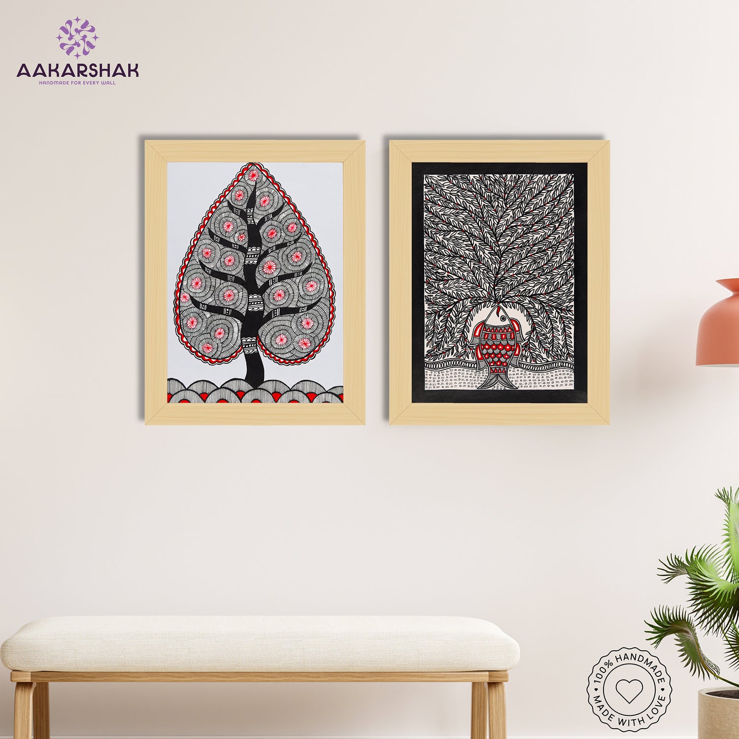 Handmade Madhubani Painting Set of 2 – Tree of life 12x16