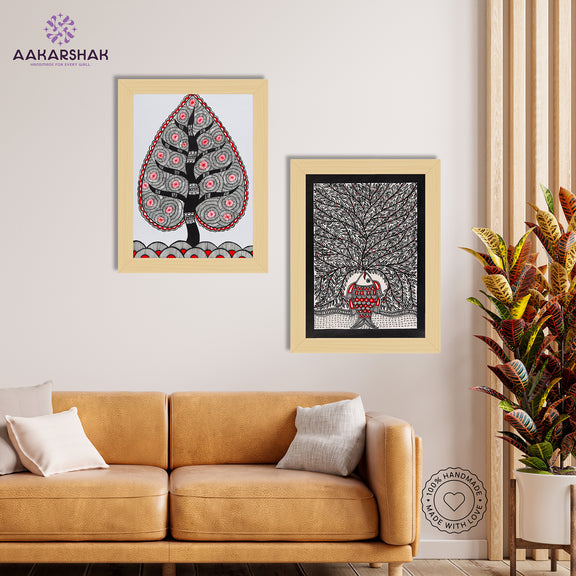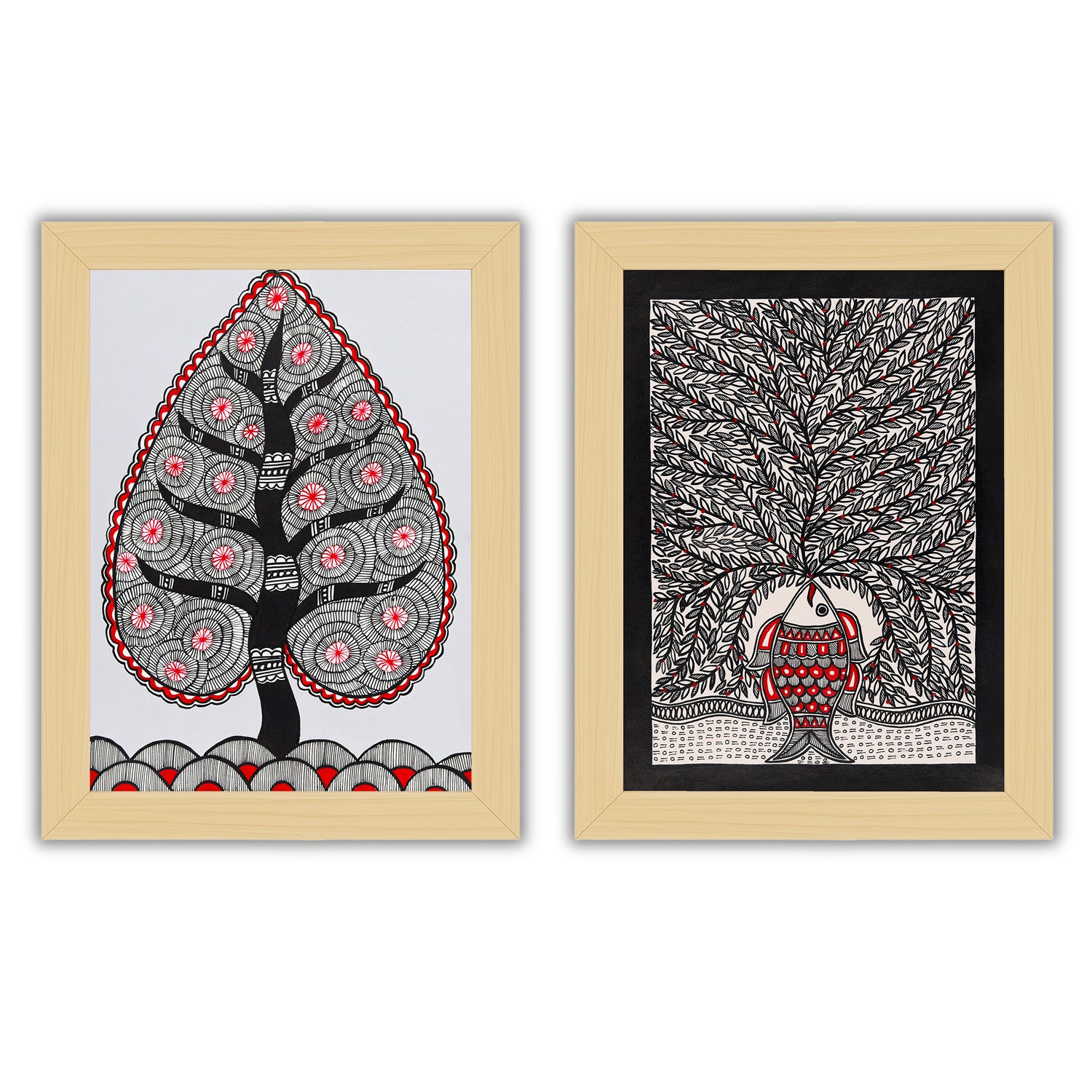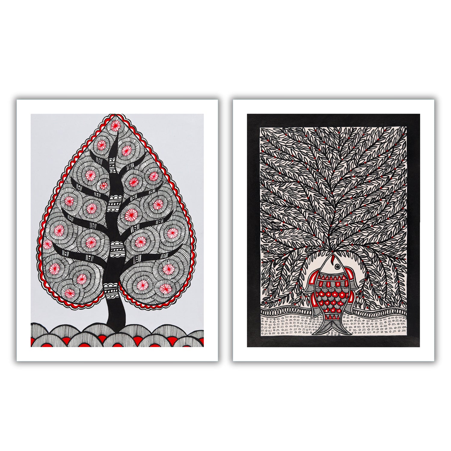 Handmade Madhubani Painting Set of 2 – Tree of life 12x16