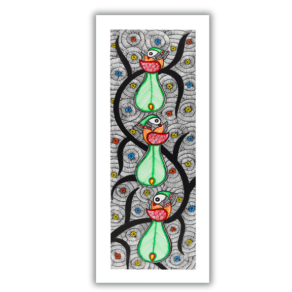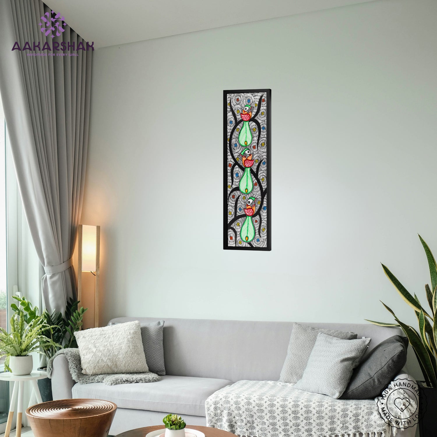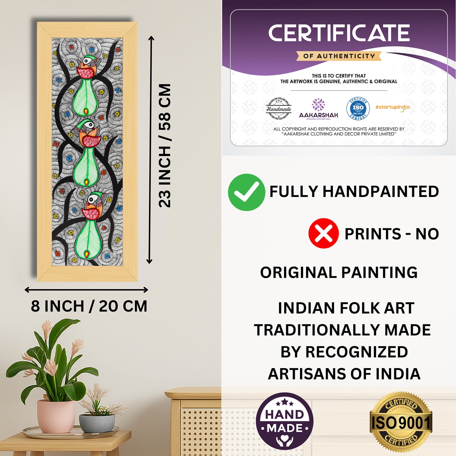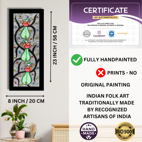 Handmade Peacock Tree of life Madhubani Painting | Wall Decor 8x23