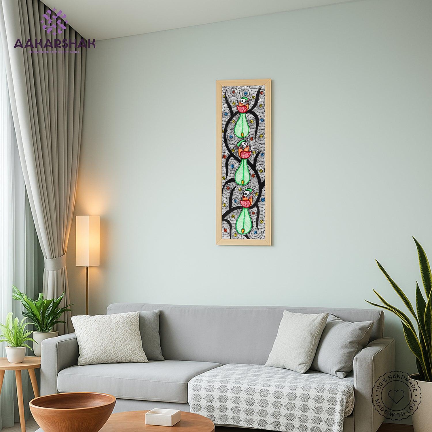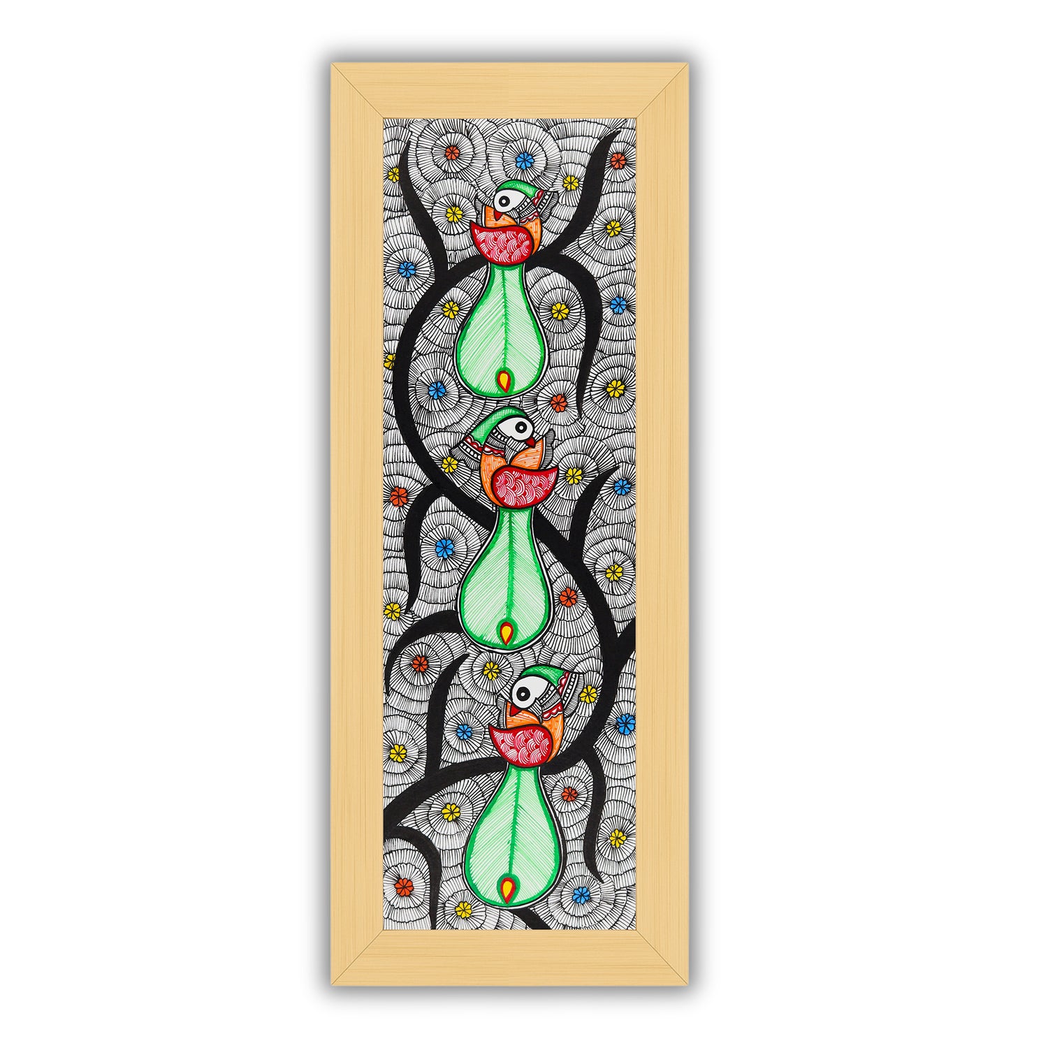 1 Framed Madhubani Painting (Peacock Tree of life motif)