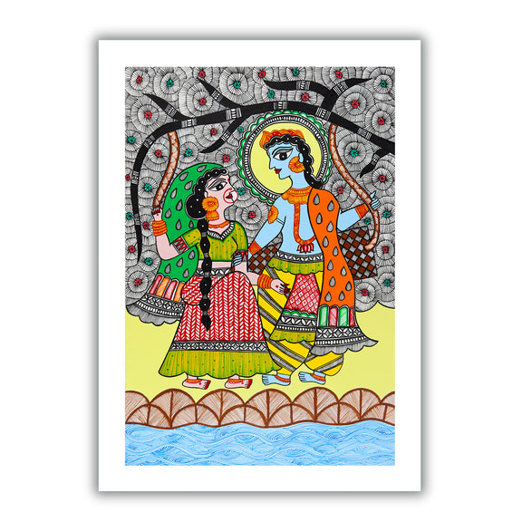 • Artwork: Handmade Madhubani (Mithila) painting featuring Radha Krishna  motifs