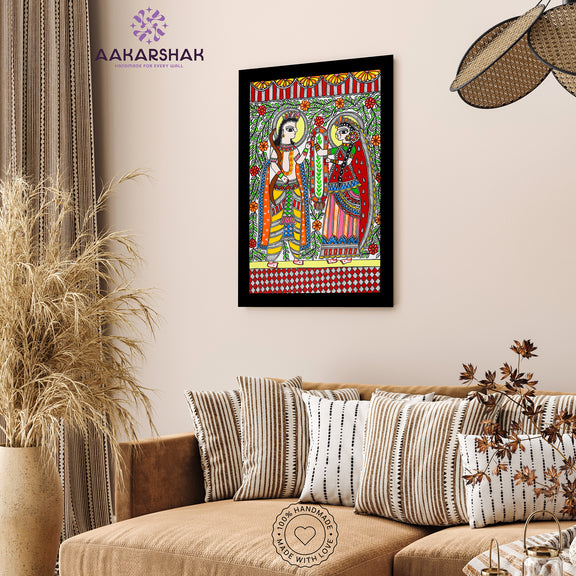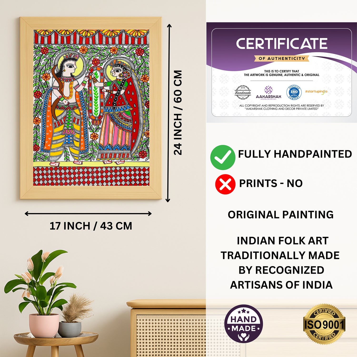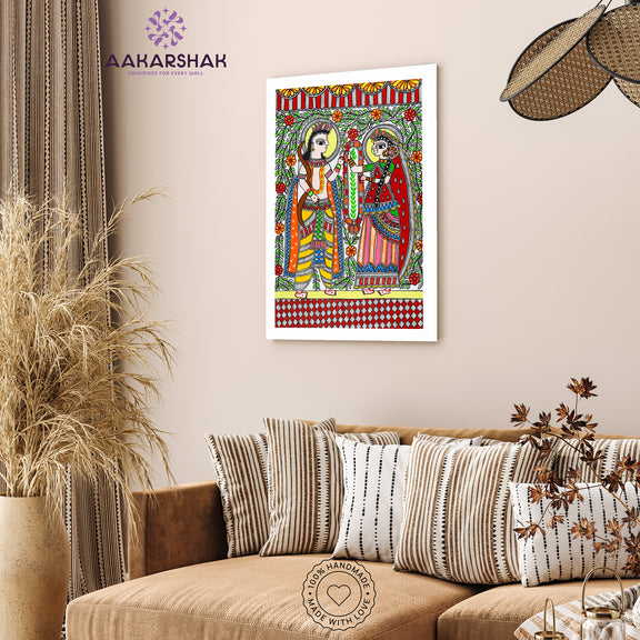 Handmade Ram Sita Madhubani Painting Wall Decor 17x24