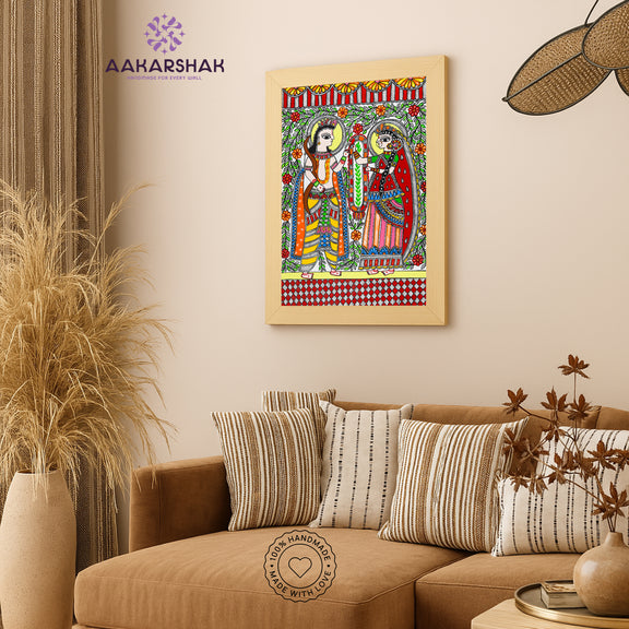 Bring tradition to your space with this vibrant, hand-painted Madhubani Ram Sita Painting, crafted by skilled artisans using ancient Mithila techniques.