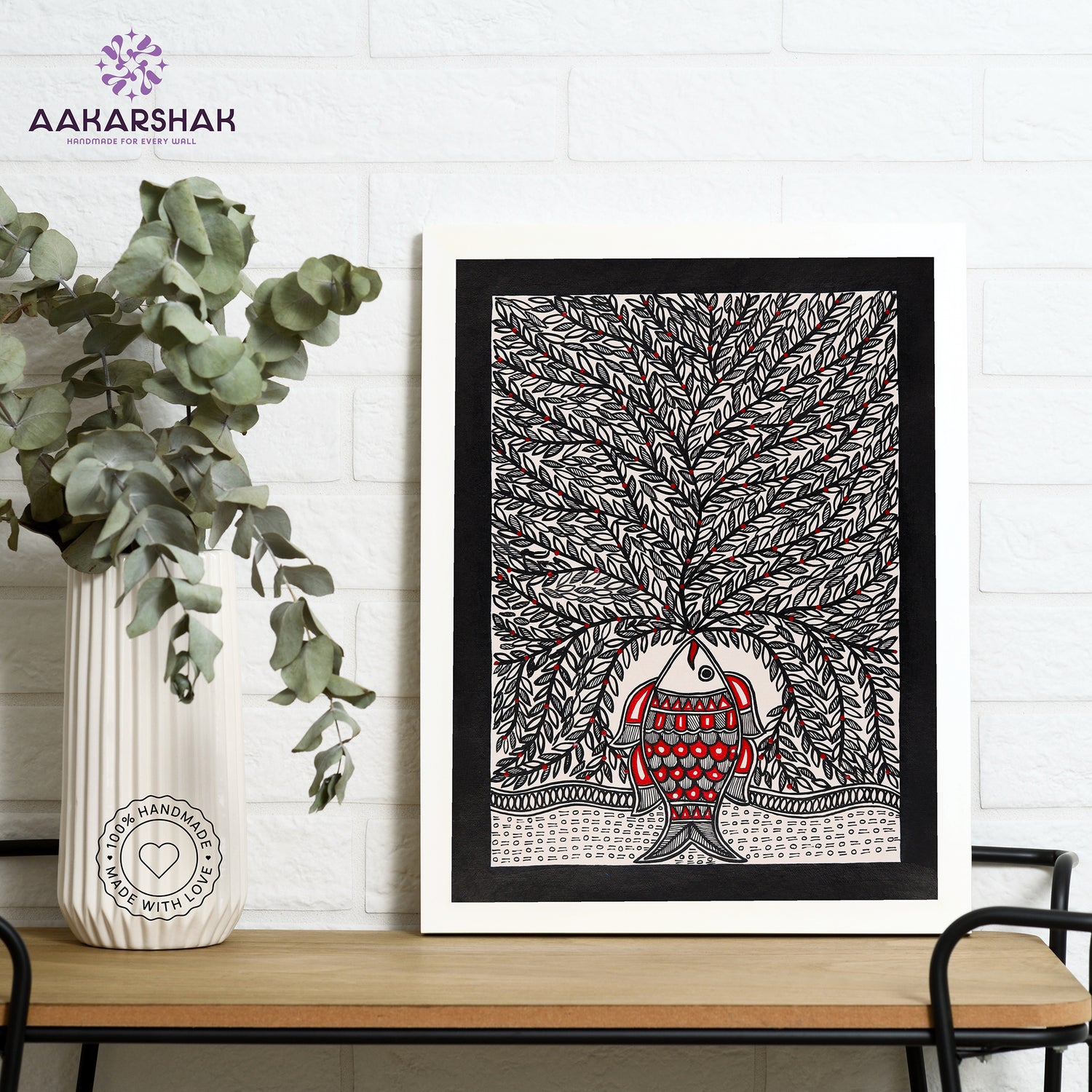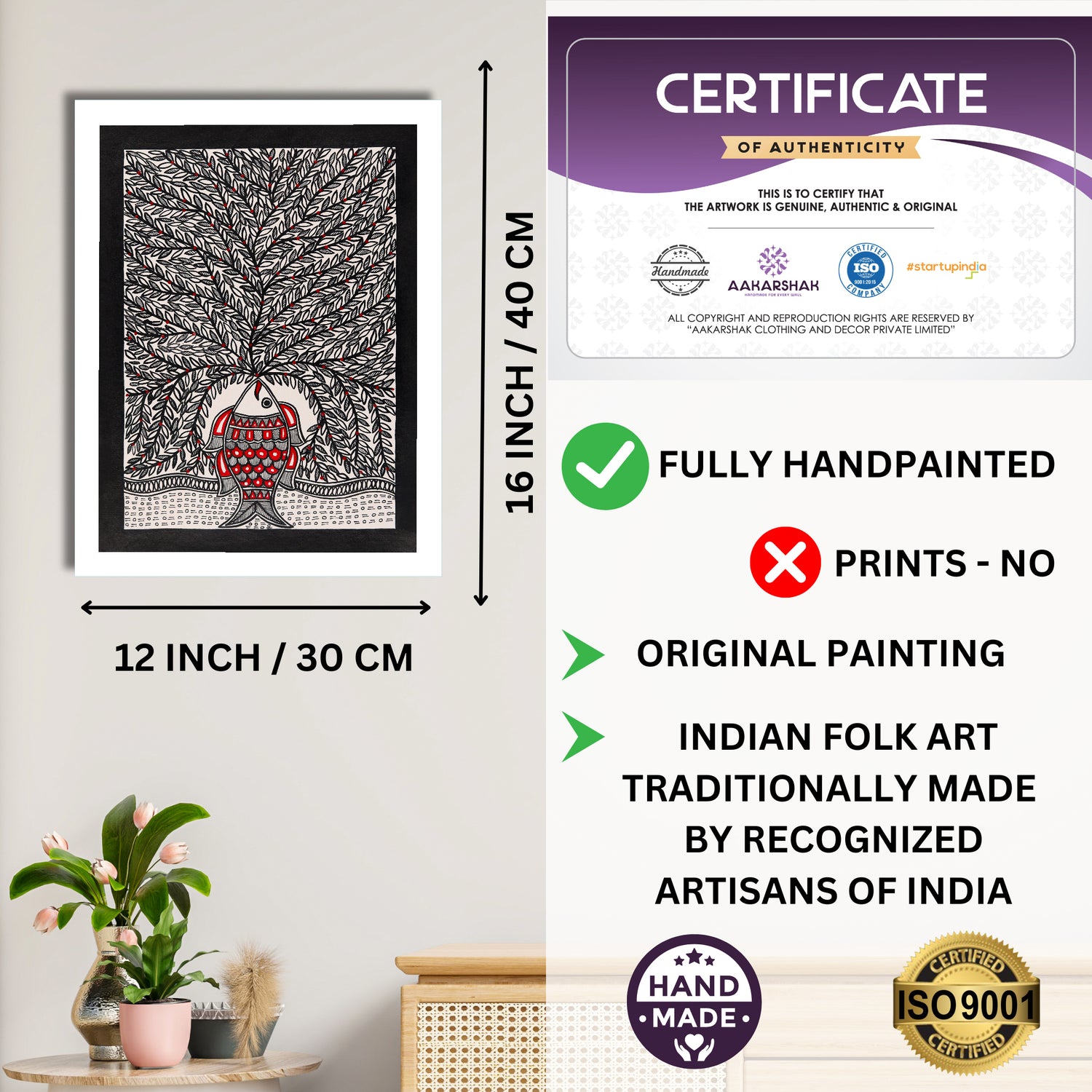 • Artwork: Handmade Madhubani (Mithila) painting featuring Tree of life motifs