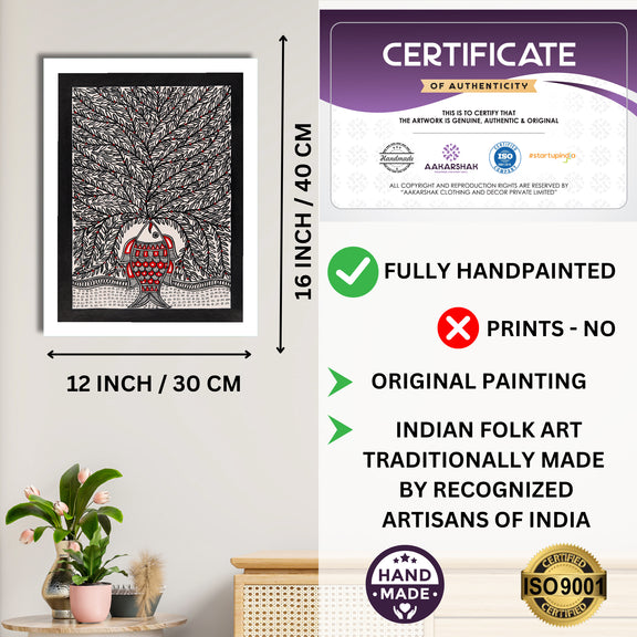 🖌️ Premium Handmade Madhubani Tree of life Painting –12x16 Inch