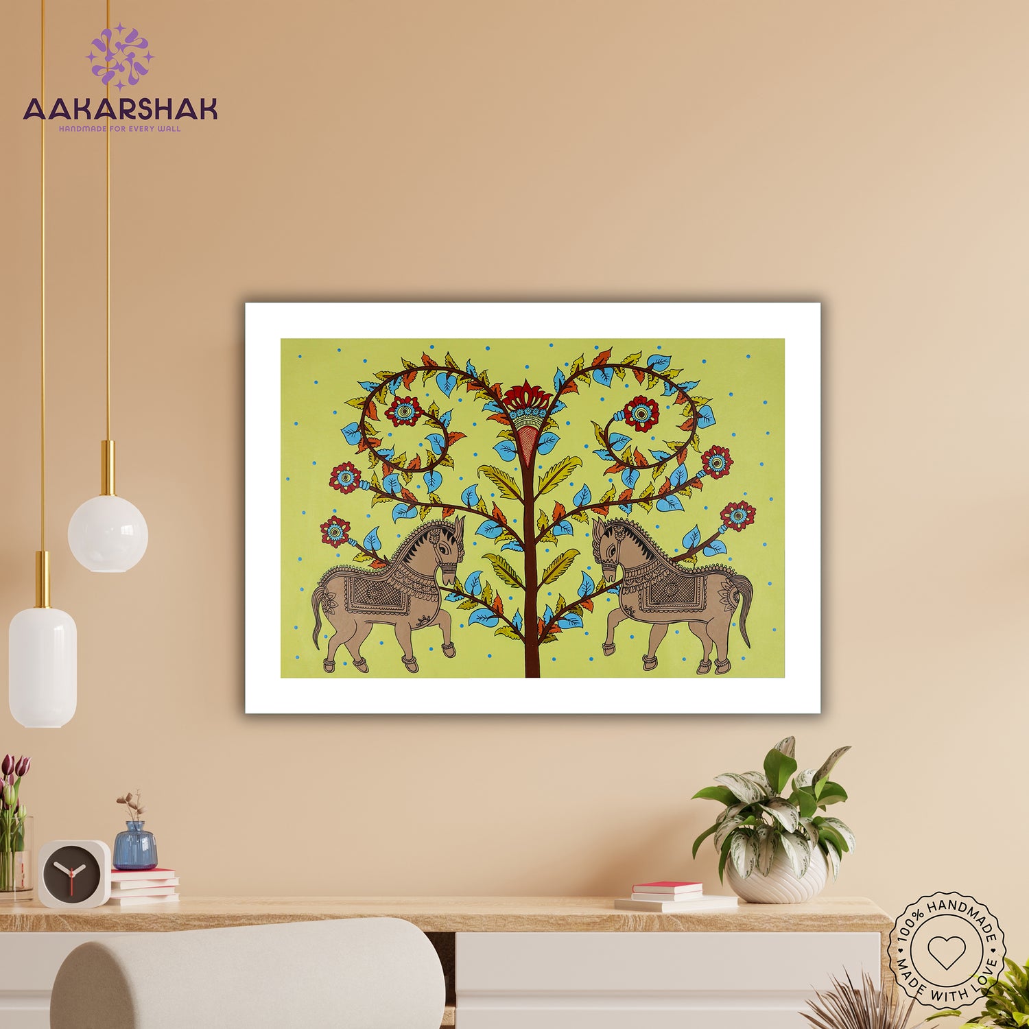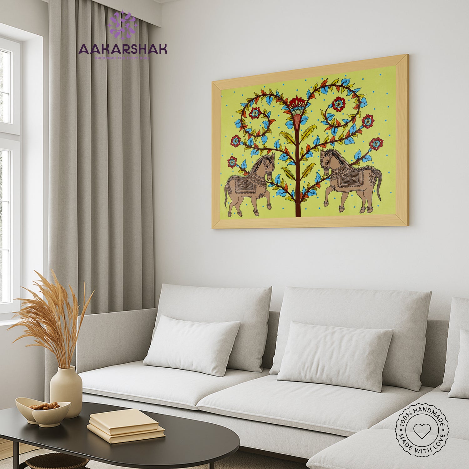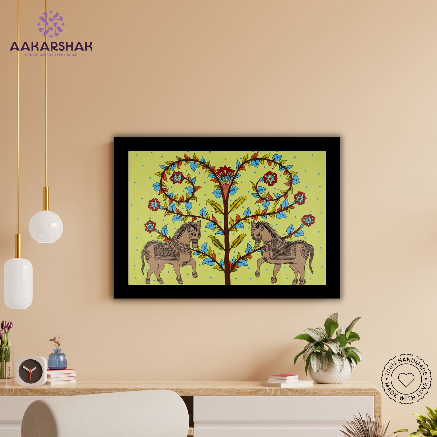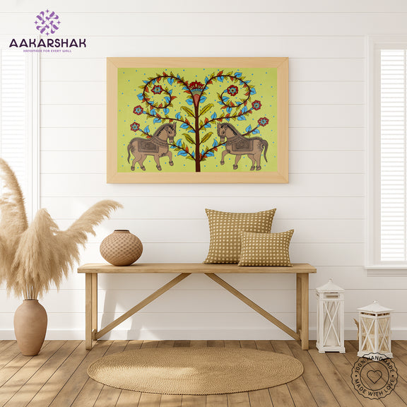 Bring home the timeless elegance of Kalamkari art with this hand-painted Horse design, created by skilled Indian artisans using traditional techniques.