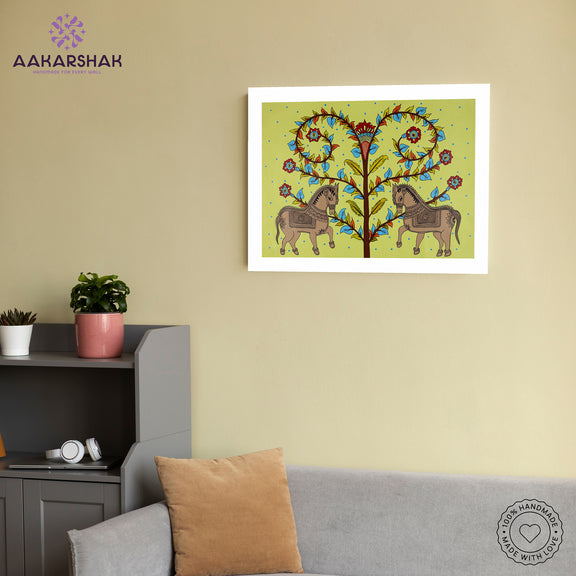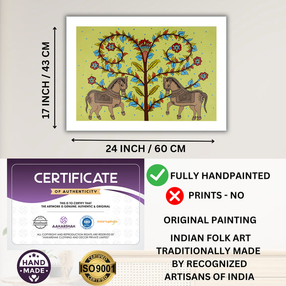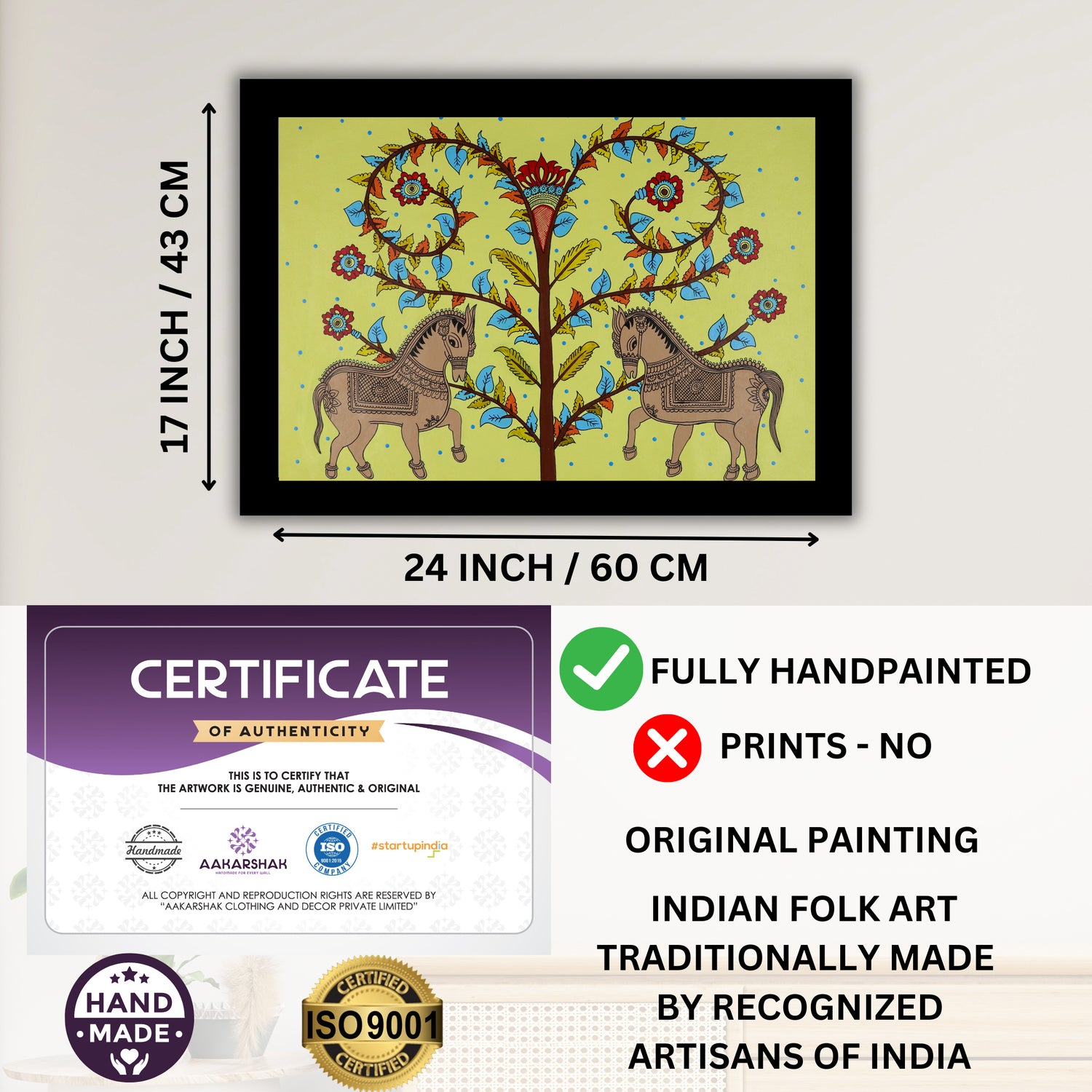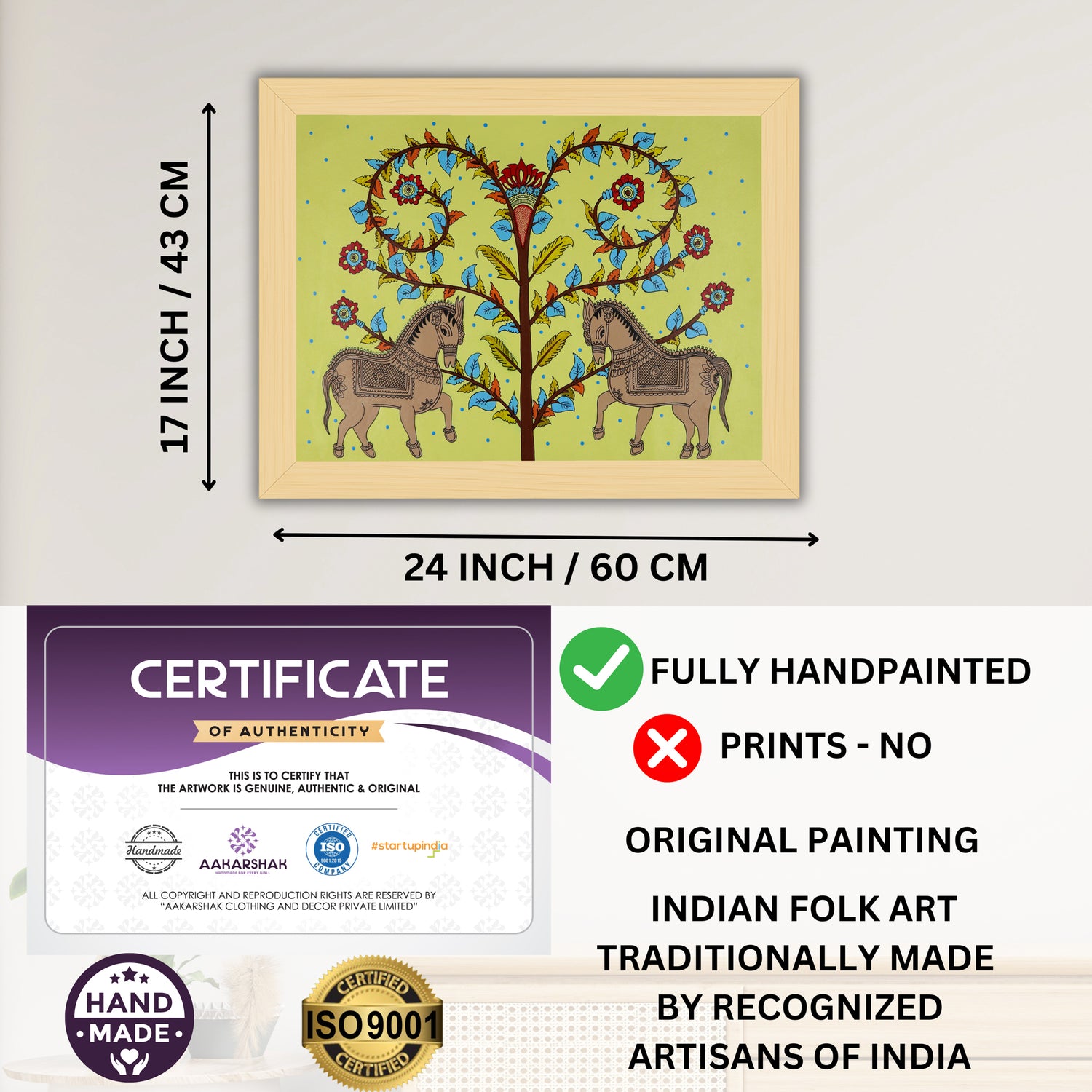 Handmade Kalamkari Horse Painting 17x24 Inch Wall Art