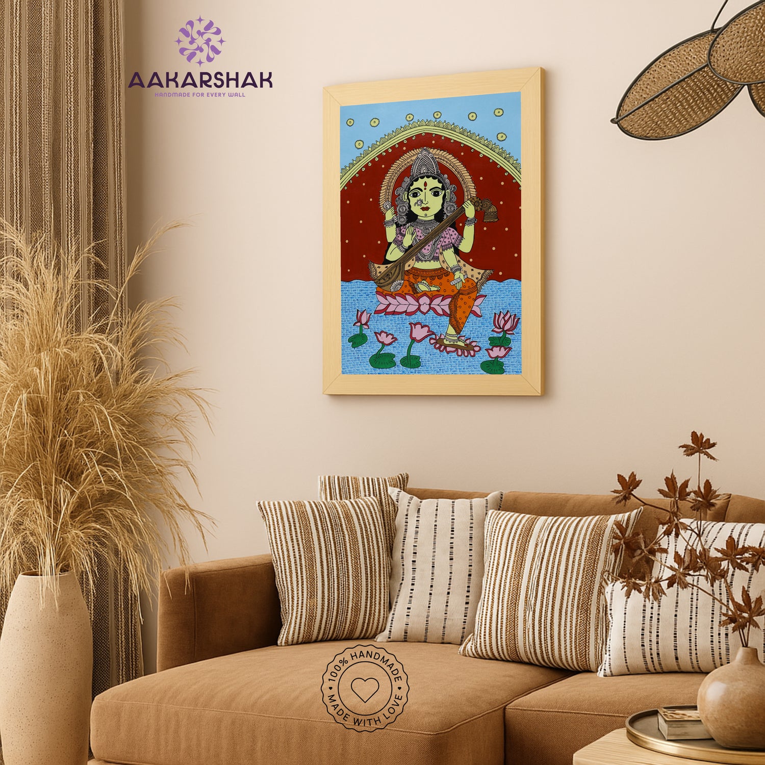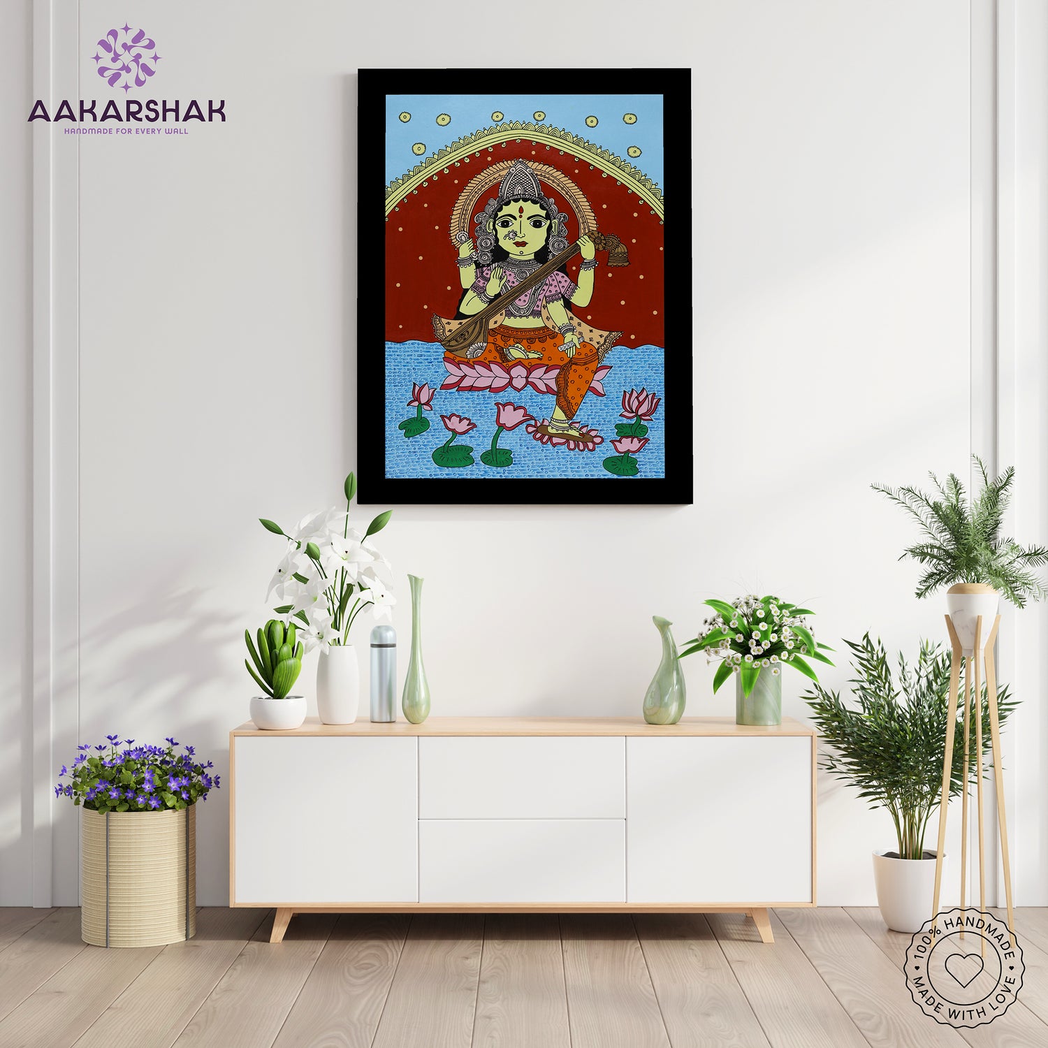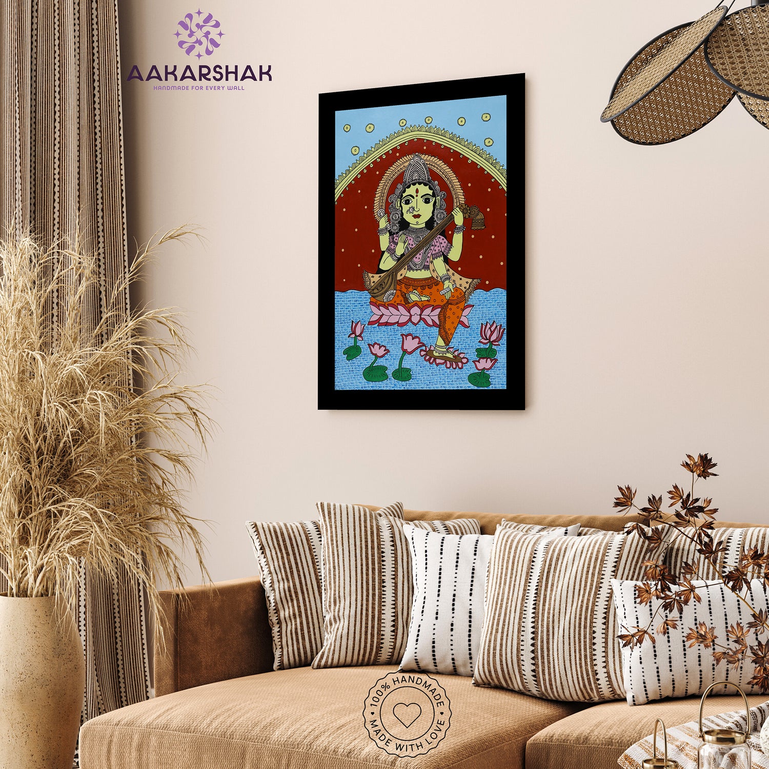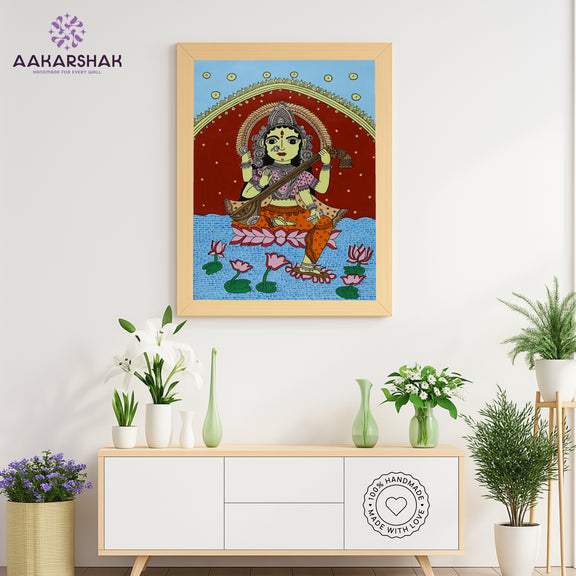 🎨 Handcrafted Kalamkari Saraswati Painting – 17x24 Inch | Framed Wall Art