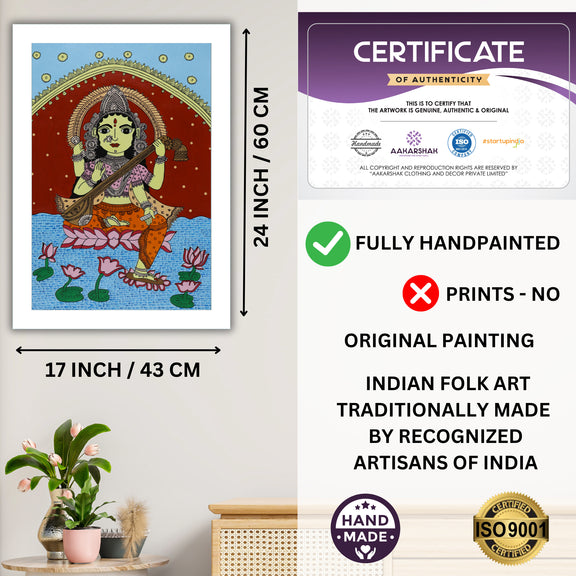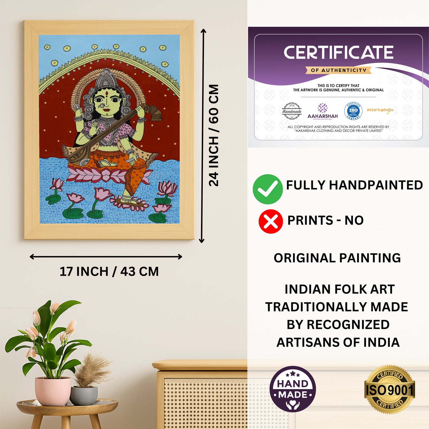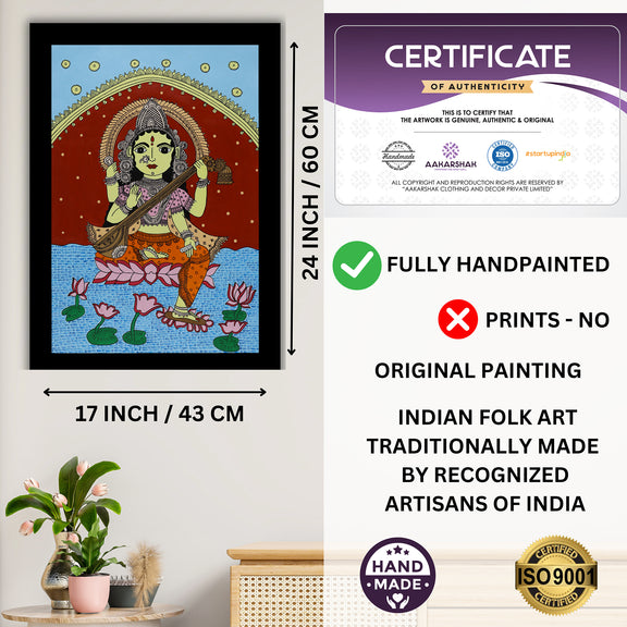 Handmade Kalamkari Saraswati Painting 17x24 Inch Wall Art