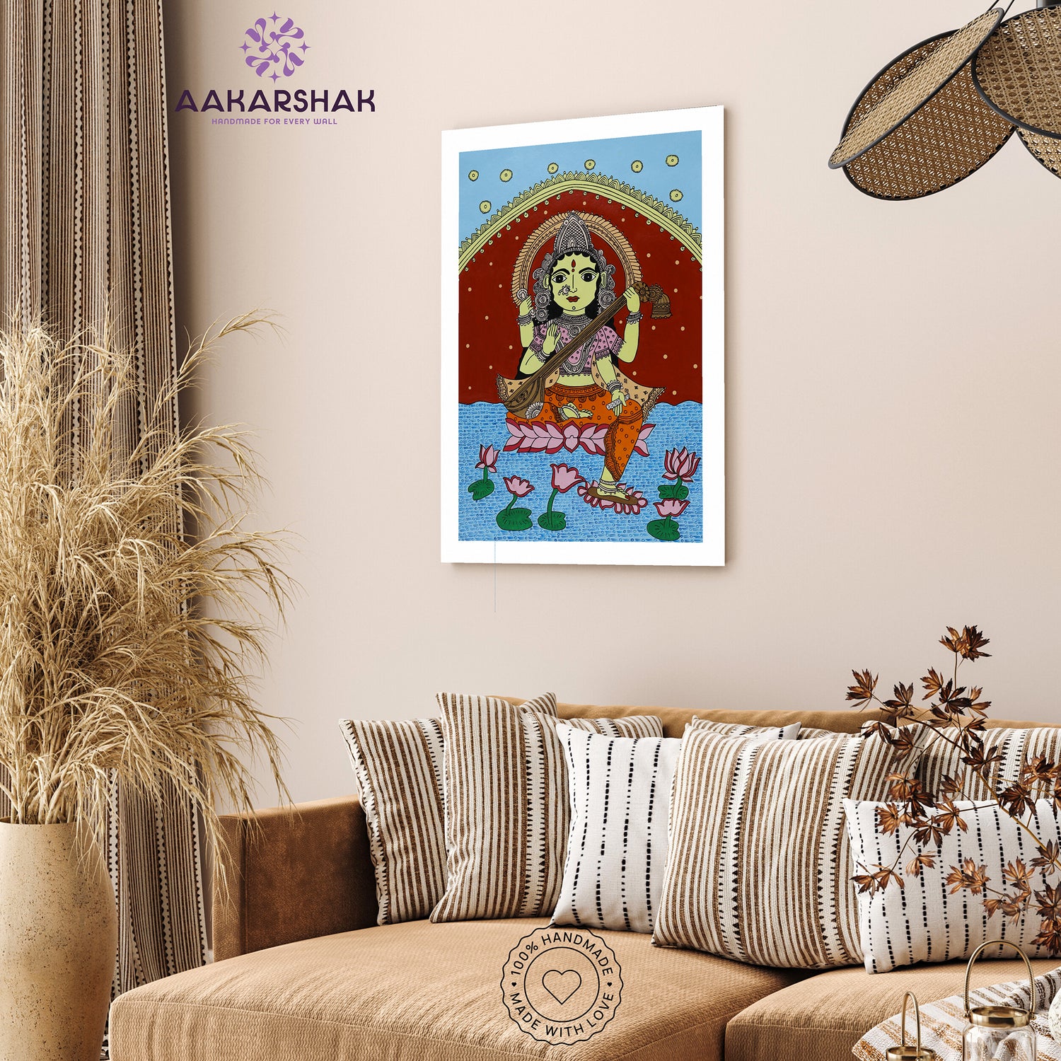 Art Style: Handmade Kalamkari painting with Saraswati motif