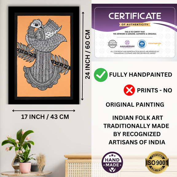 Handmade Madhubani art Peacock Painting Wall Decor 17x24 Inch