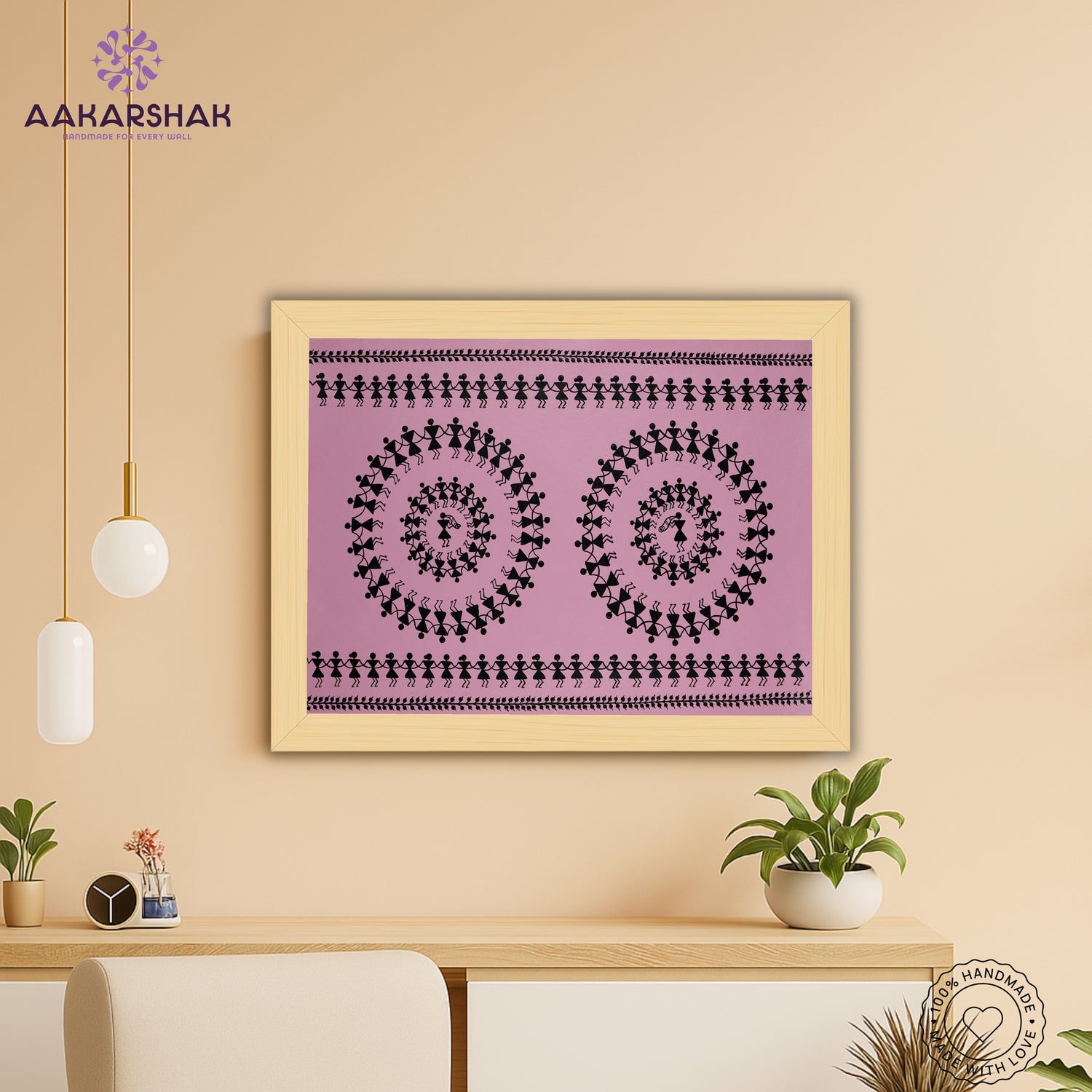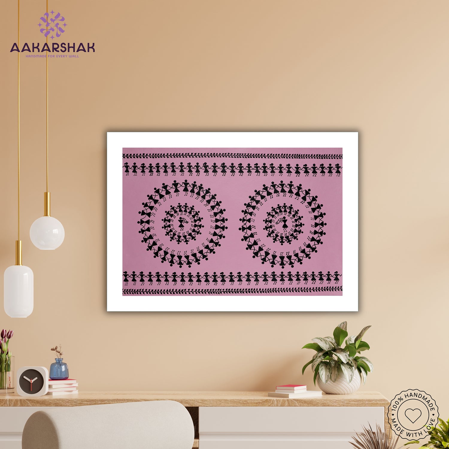 🖌️Premium Handmade Warli Dancing Painting – 17x24 Inch