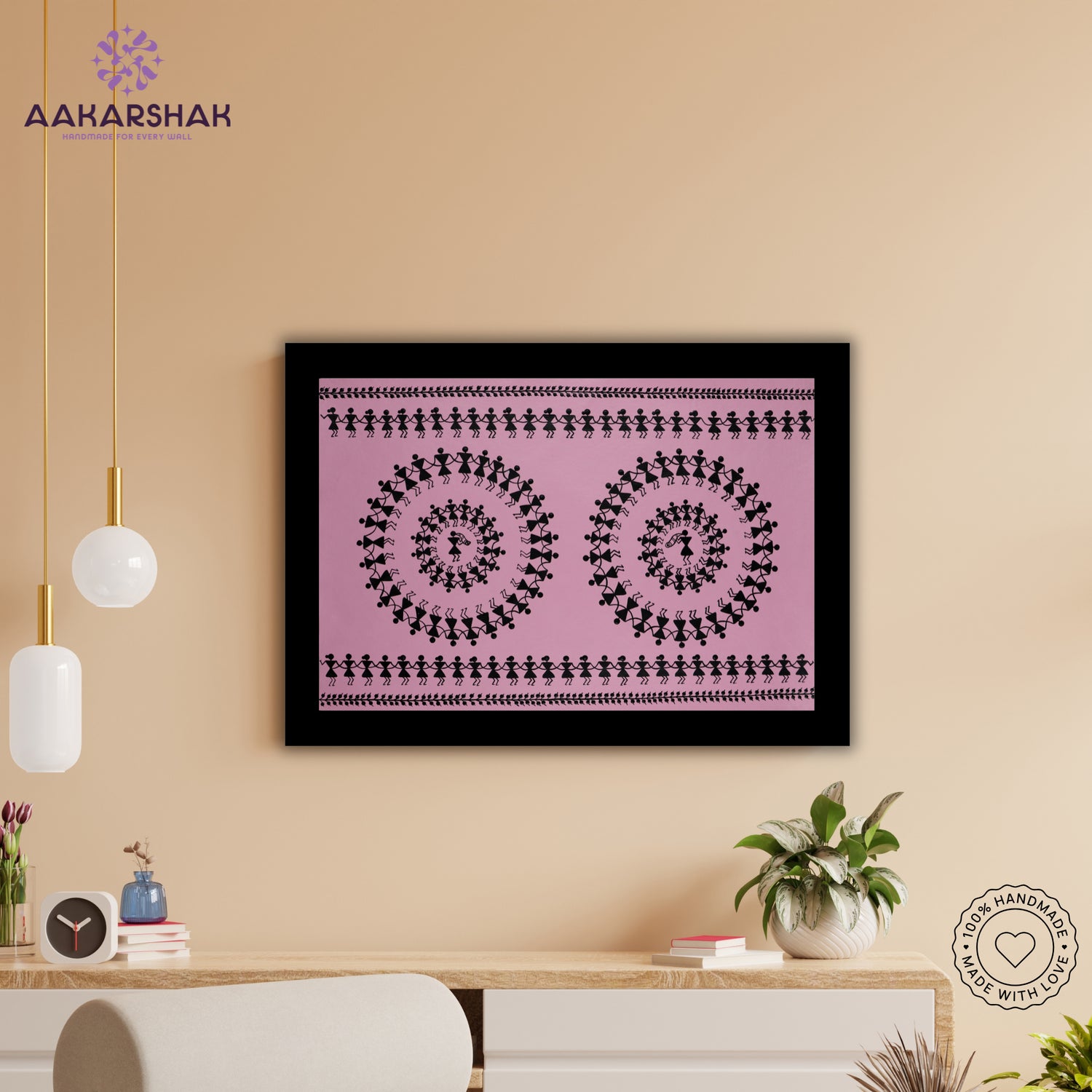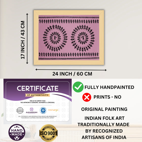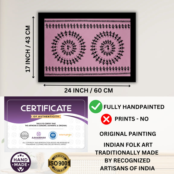 Handmade Warli Dancing Painting 17x24 Inch Framed Tribal Art
