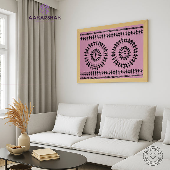 Celebrate tribal heritage with this handcrafted Warli painting, depicting a vibrant Dancing. Rooted in the Sahyadri region of Maharashtra, this artwork reflects the harmony between humans and nature through minimalist yet powerful motifs.