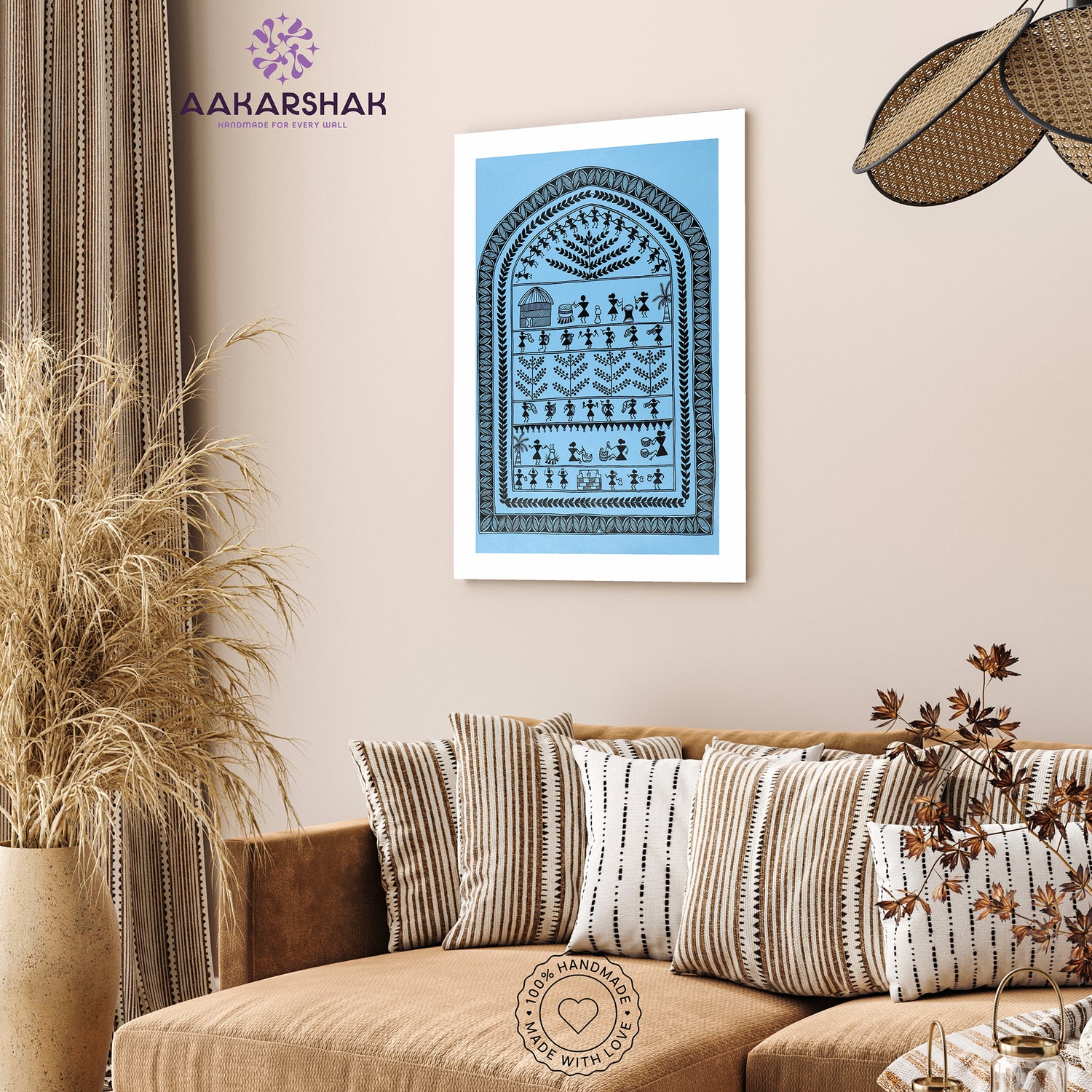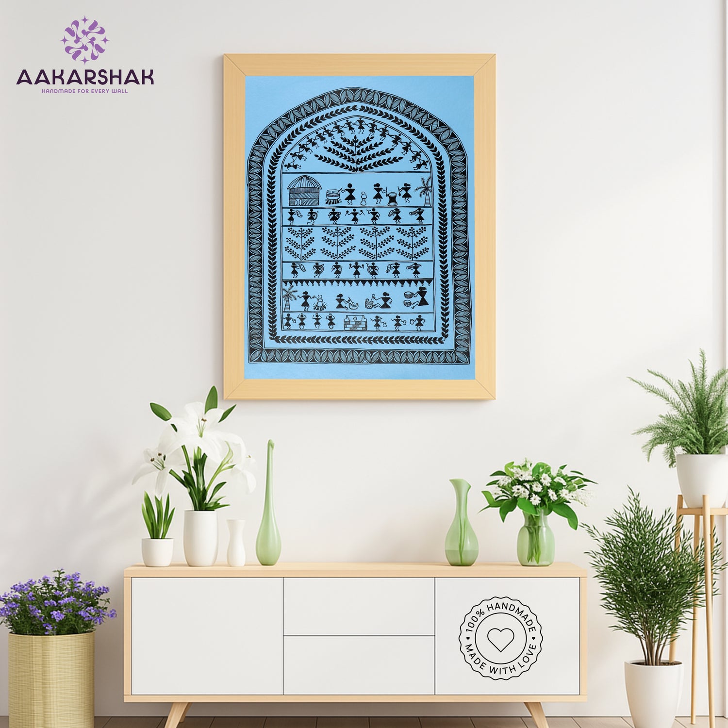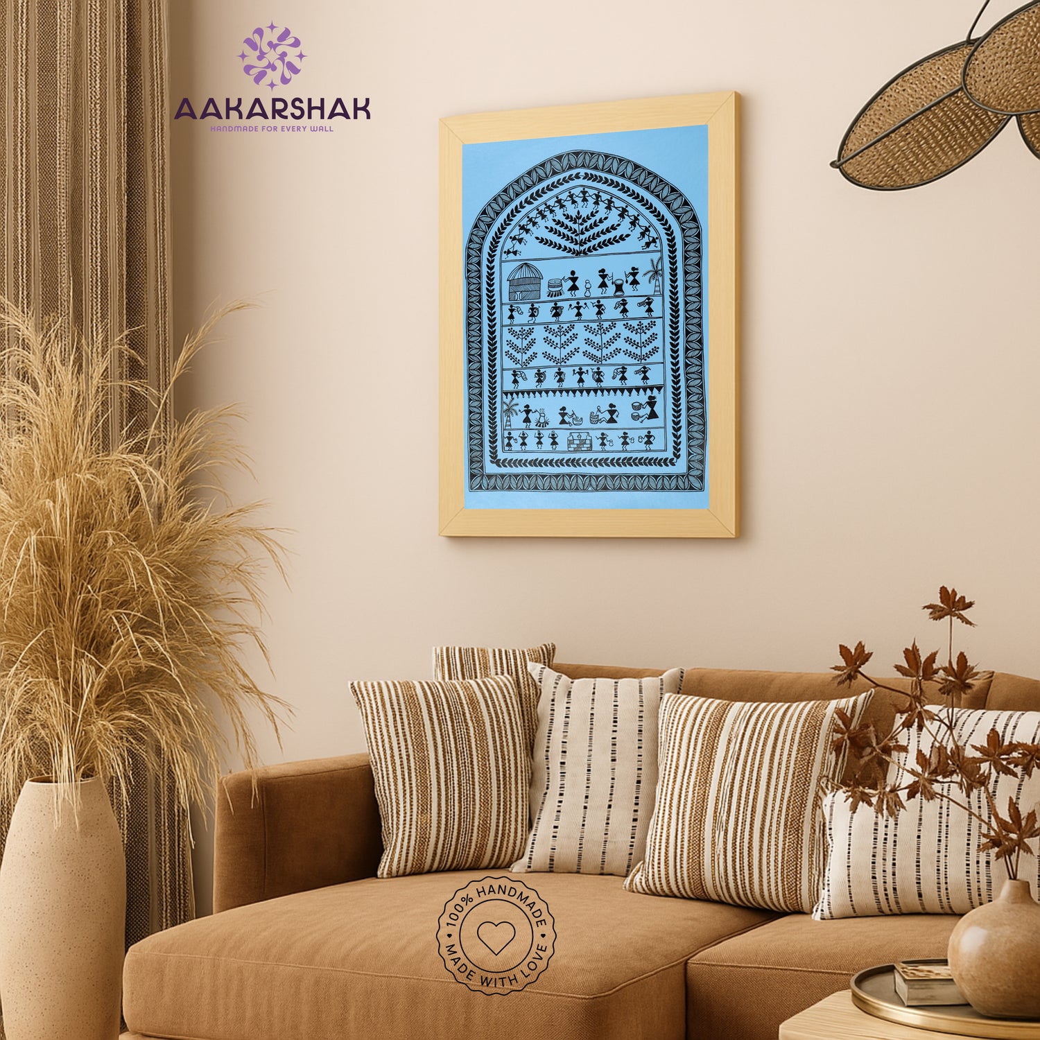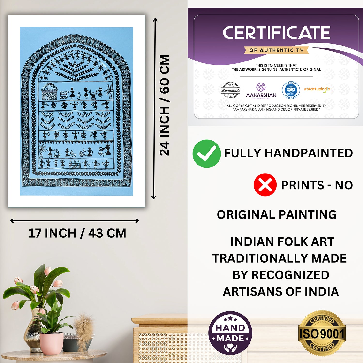 🖌️Premium Handmade Warli Village Painting – 17x24 Inch