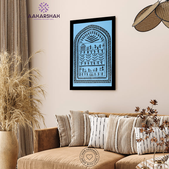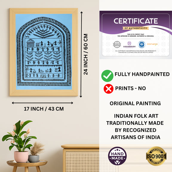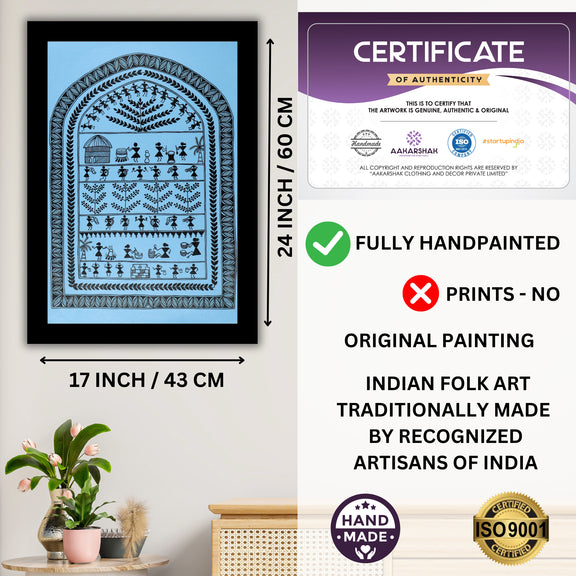 Handmade Warli Village Painting 17x24 Inch Framed Tribal Art